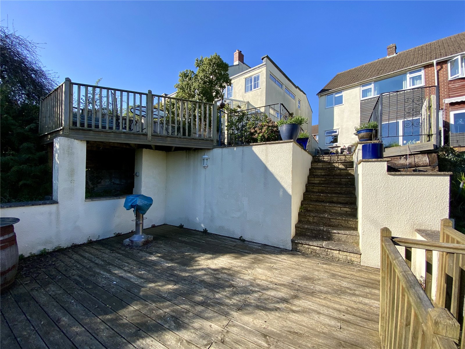 The south-facing rear garden is a true highlight of the home, featuring tiered levels enjoying the views, including a grass area, a lower decked area, and a patio by the bifold doors, perfect for outdoor dining and relaxation. The property also benefits from driveway parking.