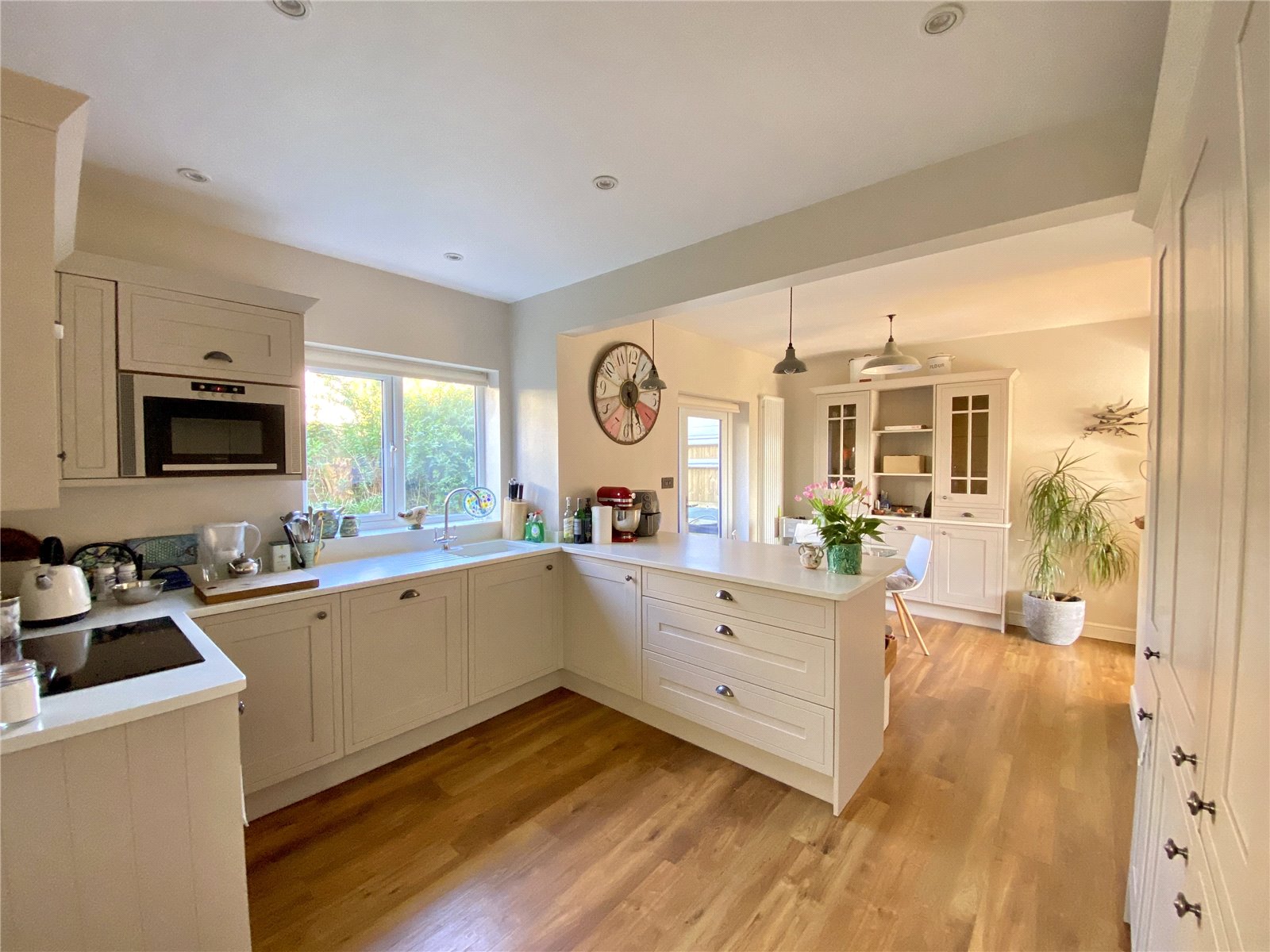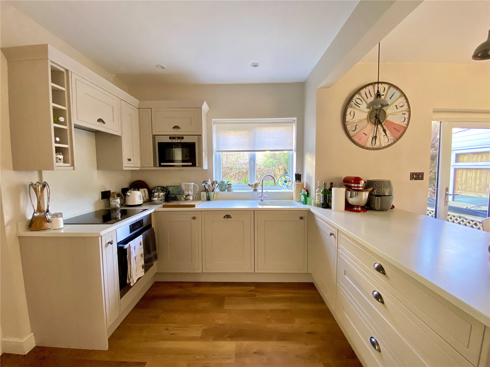 This lovely home has been stylishly modernised throughout and is perfect for those seeking a peaceful yet convenient lifestyle. The open-plan kitchen, dining, and living area creates a bright and spacious environment with bespoke pieces and is enhanced by bifold doors that open out to the south facing rear garden enjoying stunning views across the town.