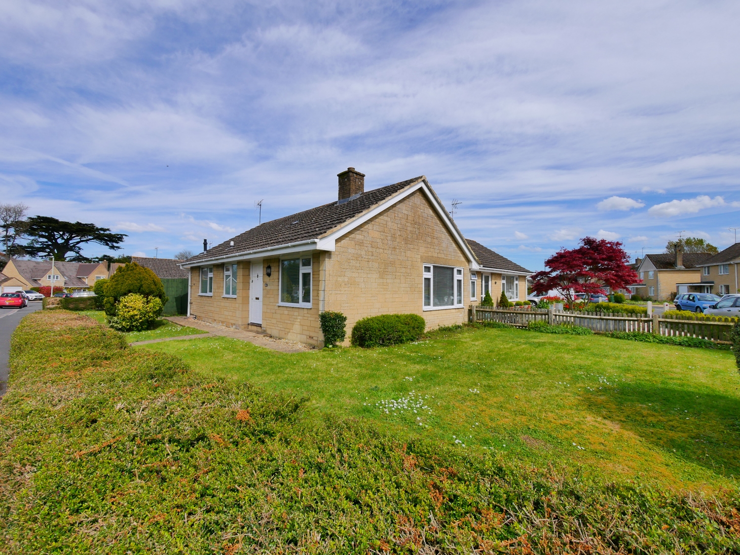 A well presented 2 double bedroom bungalow within the popular Chesterton Park area on the edge of town nearby a range of amenities including schooling & healthcare. Available for a long let, the unfurnished property includes an entrance hall & generous dining/living room with the benefit of a large picture window providing plenty of natural light. In addition there is a good sized fitted kitchen with a range of units including a gas hob & larder fridge. There is also a larder cupboard & a useful garden with views & access to the secluded & enclosed side garden. Offering additional seclusion the master bedroom is usefully located to the rear of the property as well as benefitting from fitted storage. The property further boasts a 2nd smaller double bedroom together with a well appointed family bathroom with modern suite & shower. Externally there are pretty lawned gardens to 3 aspects together with a garage with additional parking.