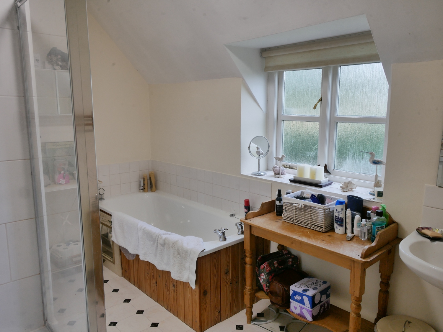 Upstairs, there are two double bedrooms—both with fitted wardrobes—and a large family bathroom complete with a separate shower.
