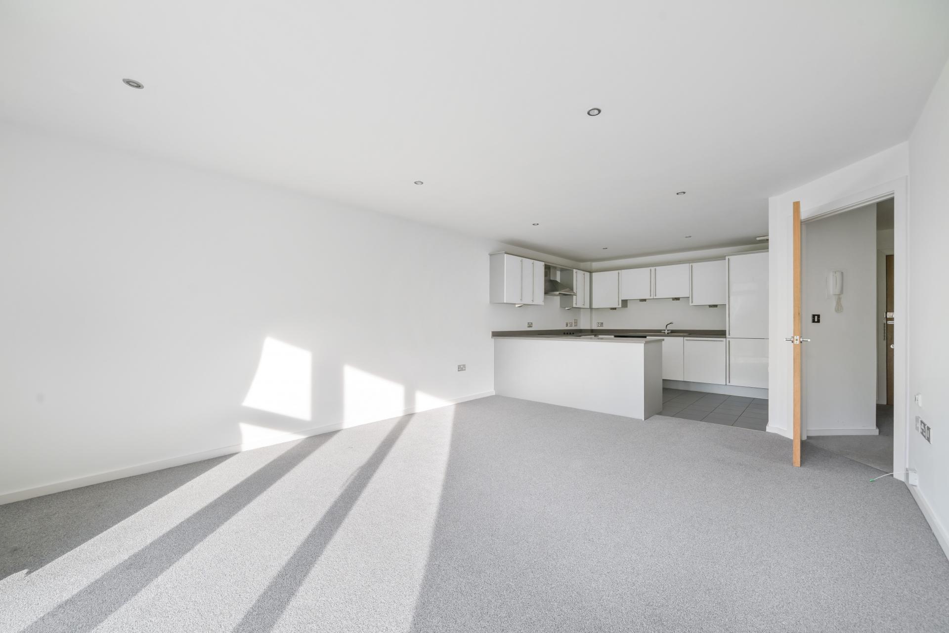 - Open-plan living room with fitted kitchen