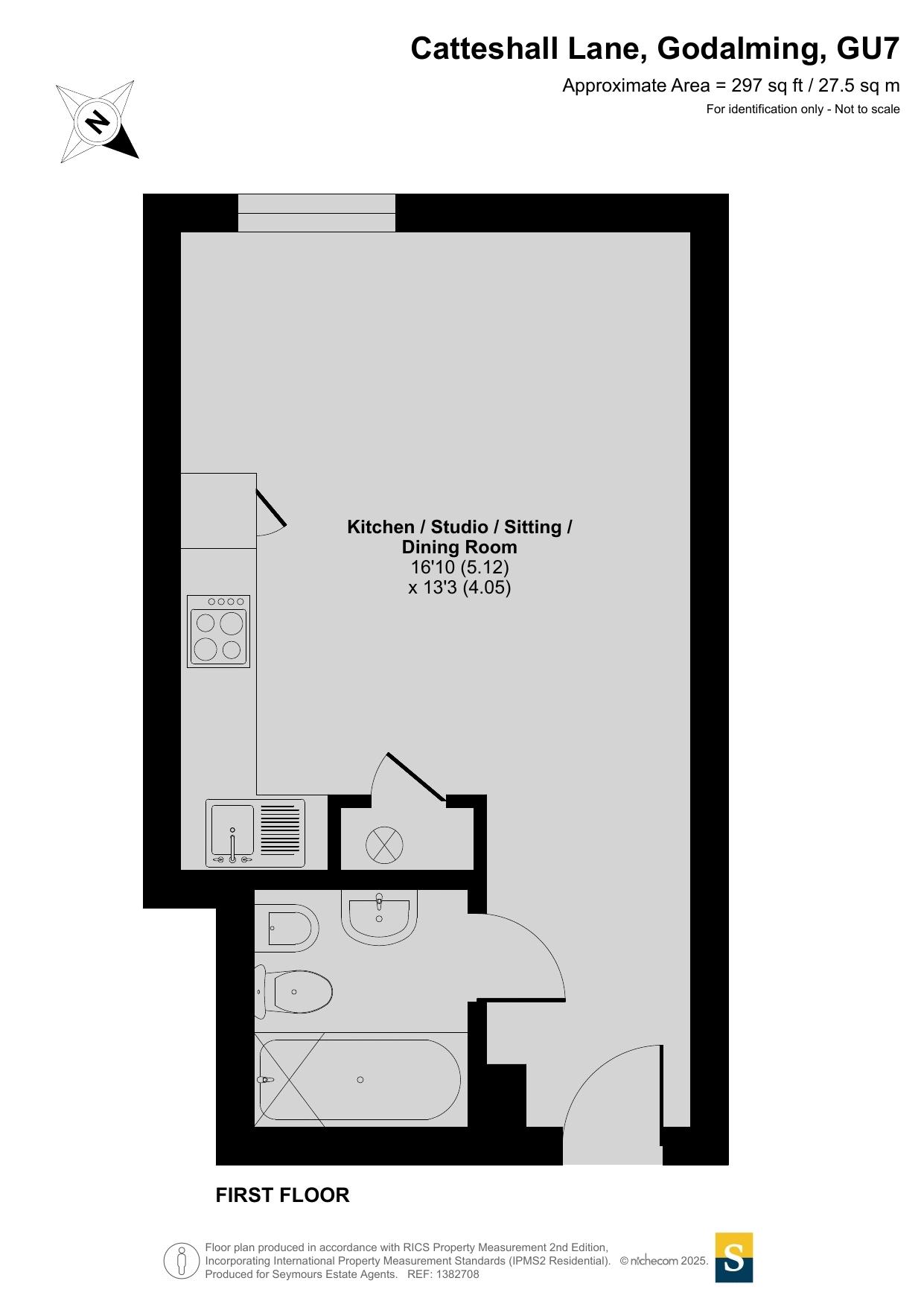 Seymours in Godalming are delighted to present this spacious and well-designed studio apartment, located on the second floor of the highly regarded Thornbrook House development. Offering modern, low-maintenance living, the property is ideally situated within easy walking distance of Godalming town centre, the mainline station and an excellent range of local amenities. Extending to approximately 297 sq. ft. (27.5 sq. m), the apartment features a bright and versatile open-plan kitchen / studio / sitting / dining space, thoughtfully arranged to maximise natural light and flexibility. The contemporary fitted kitchen provides integrated appliances and ample storage, while the main studio area offers plenty of room for both living and sleeping arrangements. The well-appointed bathroom is finished to a high standard and includes a white suite with bath and shower over.