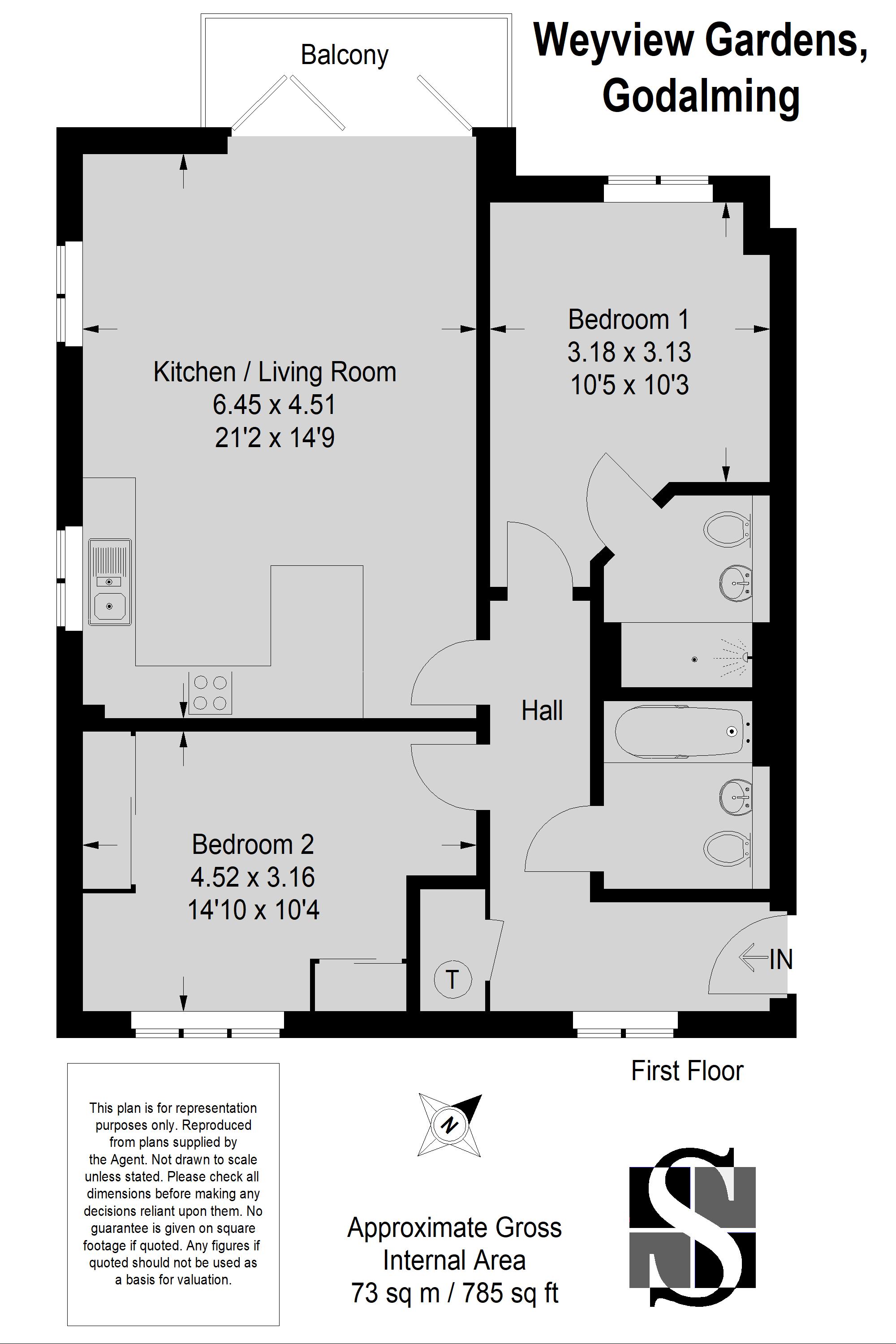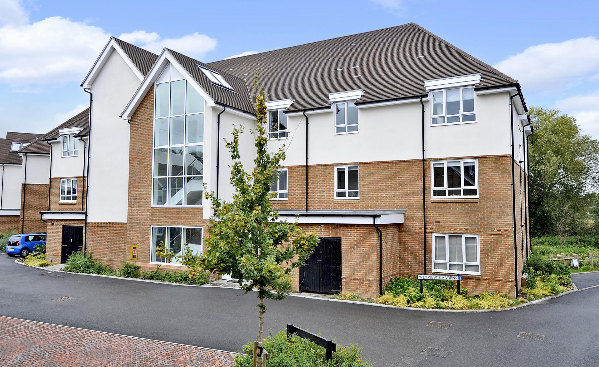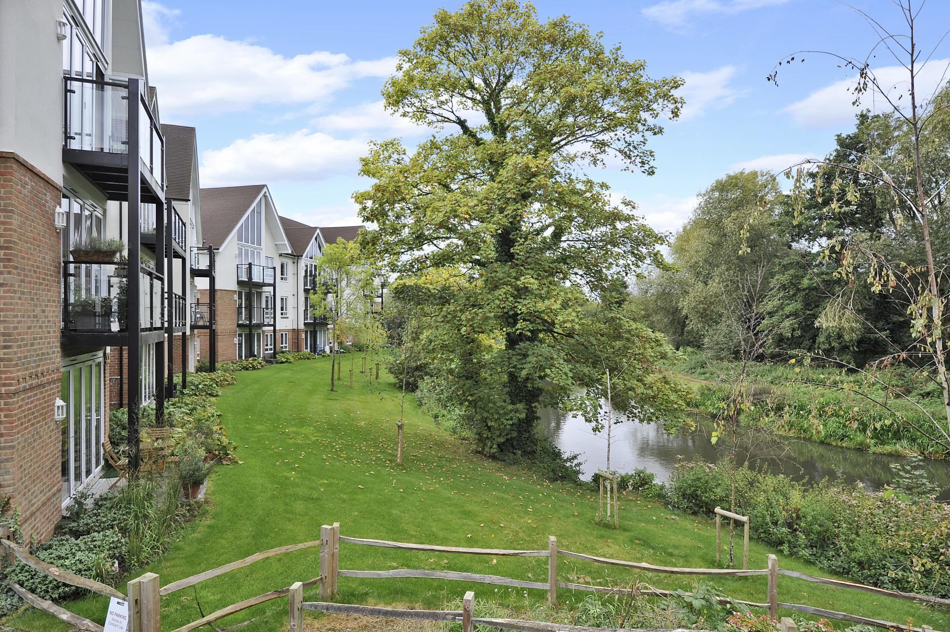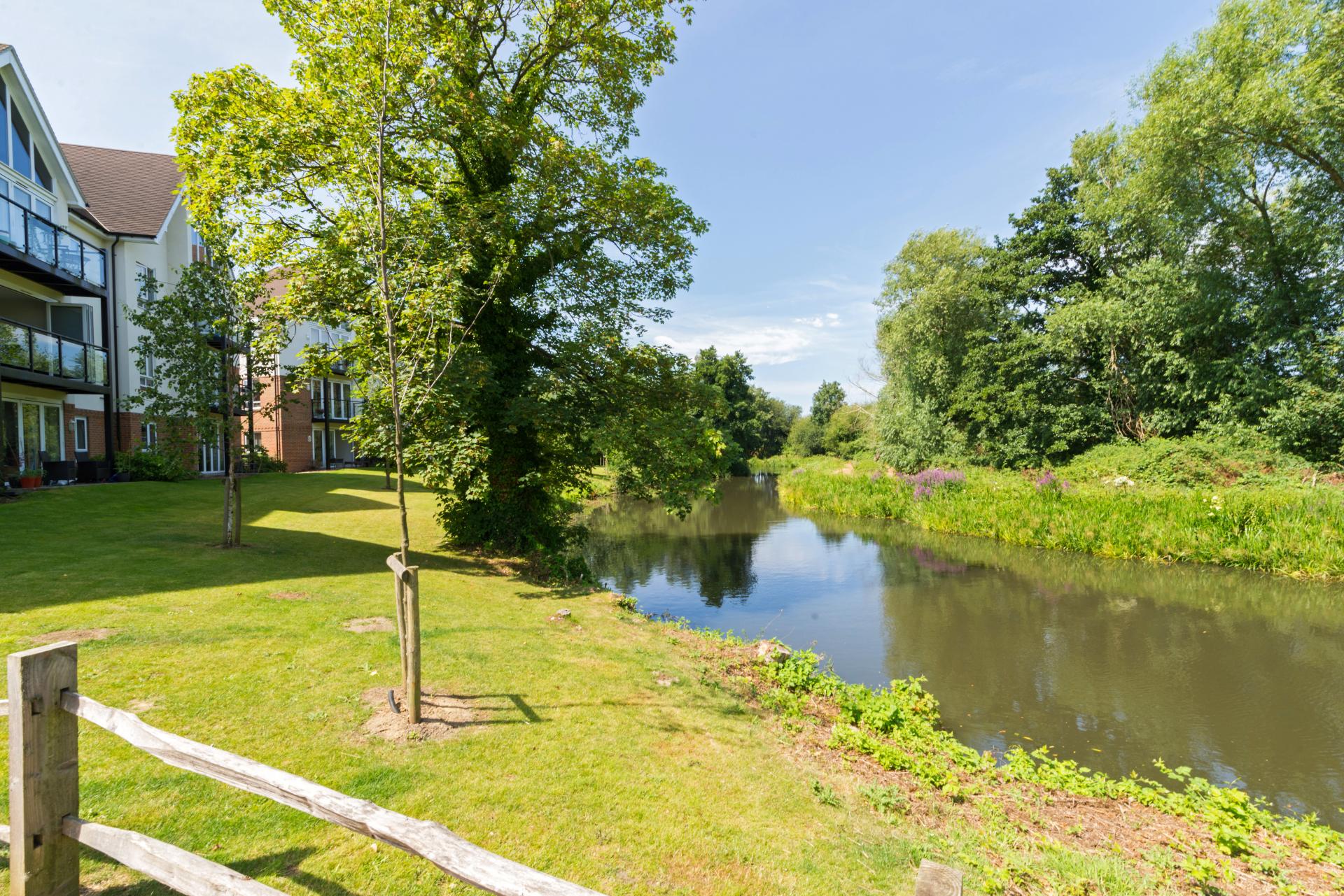 Seymours in Godalming are delighted to present this luxury modern top floor two bedroom, two bathroom apartment set within this prestigious riverside development in Godalming, built by Linden Homes. Occupying a prime elevated position within the development, the property offers approximately 785 sq ft of beautifully appointed and well-balanced accommodation. The heart of the home is a spacious open-plan kitchen/living/dining room featuring contemporary fitted units, integrated appliances and sleek finishes throughout. Patio doors open onto a private balcony, flooding the space with natural light and enjoying stunning views over the River Wey. The principal bedroom benefits from attractive river views and a luxury en-suite shower room. A further generous double bedroom is served by a stylish modern family bathroom, both finished to a high standard. Externally, the apartment enjoys a private balcony overlooking the river, together with well-maintained communal grounds within this sought-after development. The property is ideally positioned within easy reach of Godalming High Street, the mainline station (London Waterloo) and scenic riverside walks.