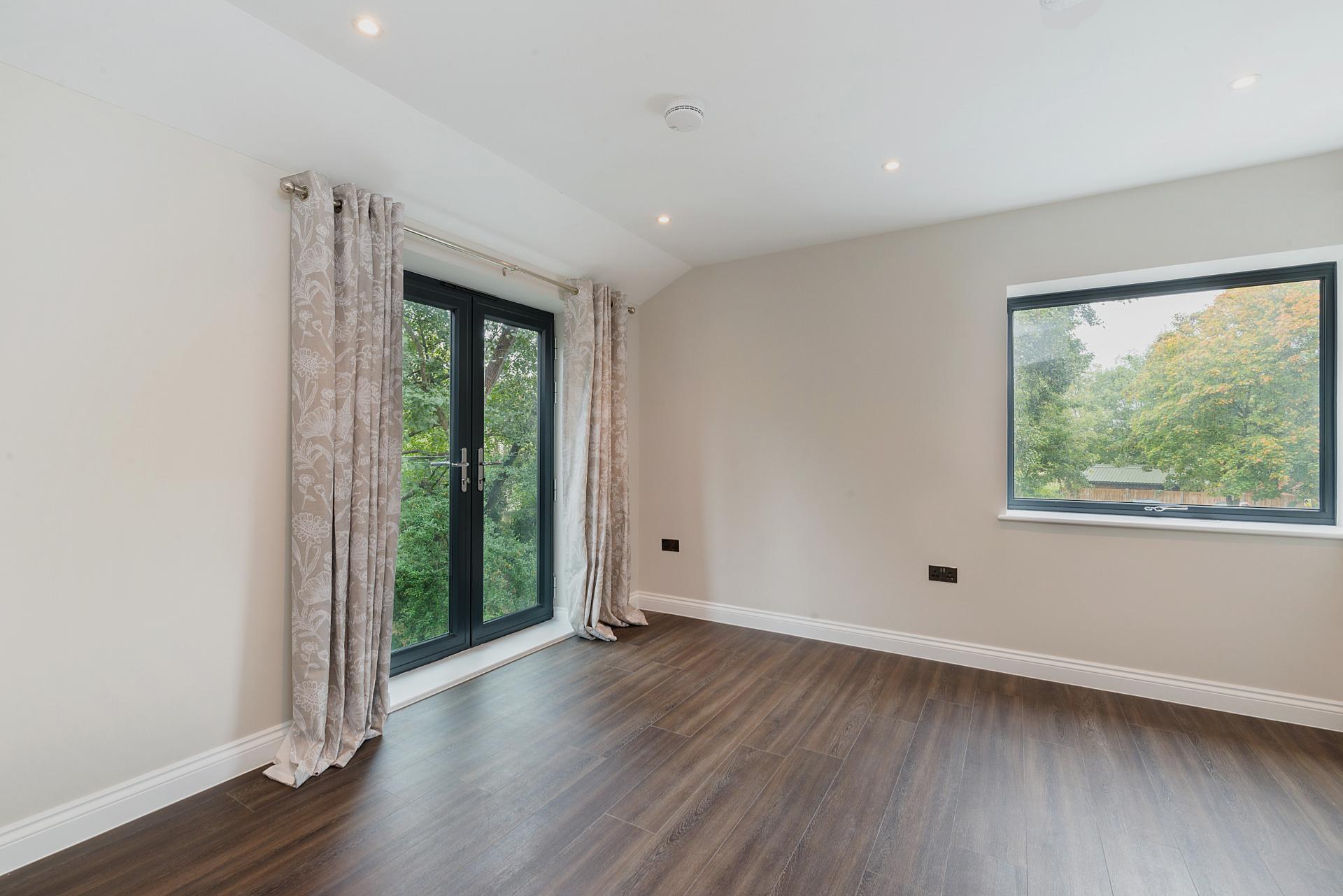 A spacious double bedroom with fitted wardrobes