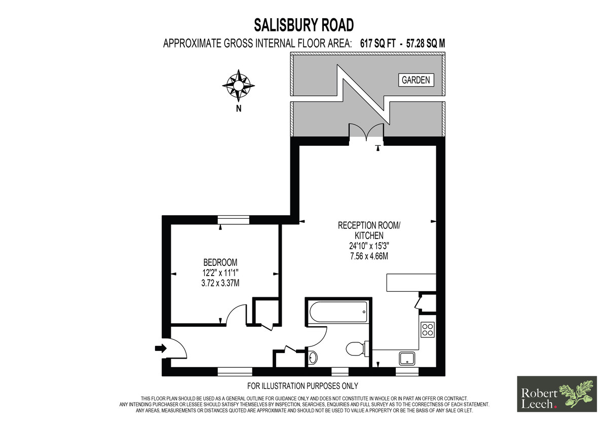 A well-arranged one-bedroom property offering approximately 617 sq. ft. of accommodation, with a private garden.