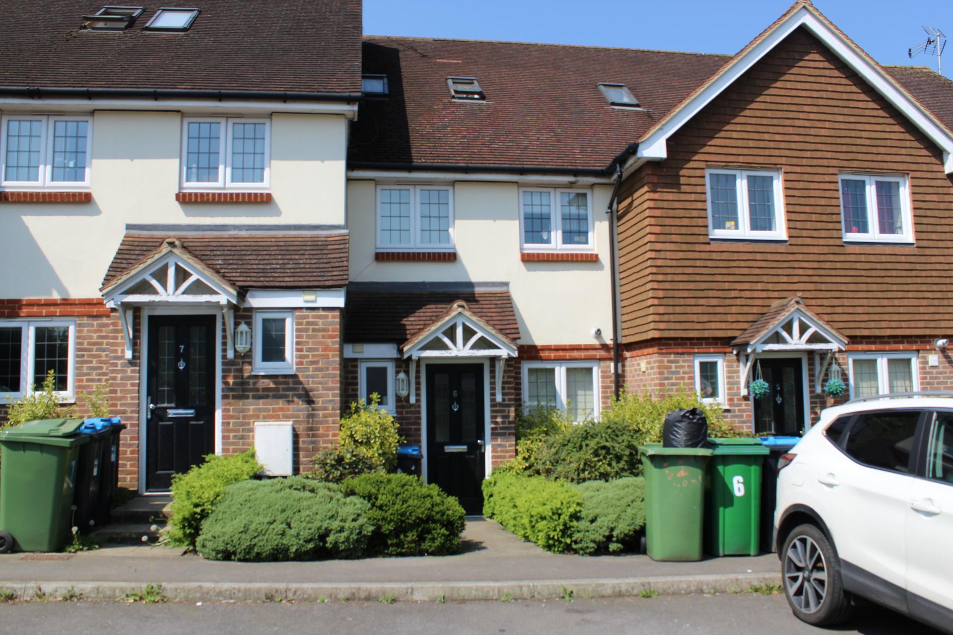 Mid terraced town house in gated development on 3 floors with allocated parking, 3 double bedrooms, family bathroom and 2 en-suites, downstairs WC, fully fitted kitchen, spacious lounge, neutral decor and carpets, spacious rear garden, within walking distance to Godstone Village and within close proximity to M25 motorway, available soon, unfurnished.