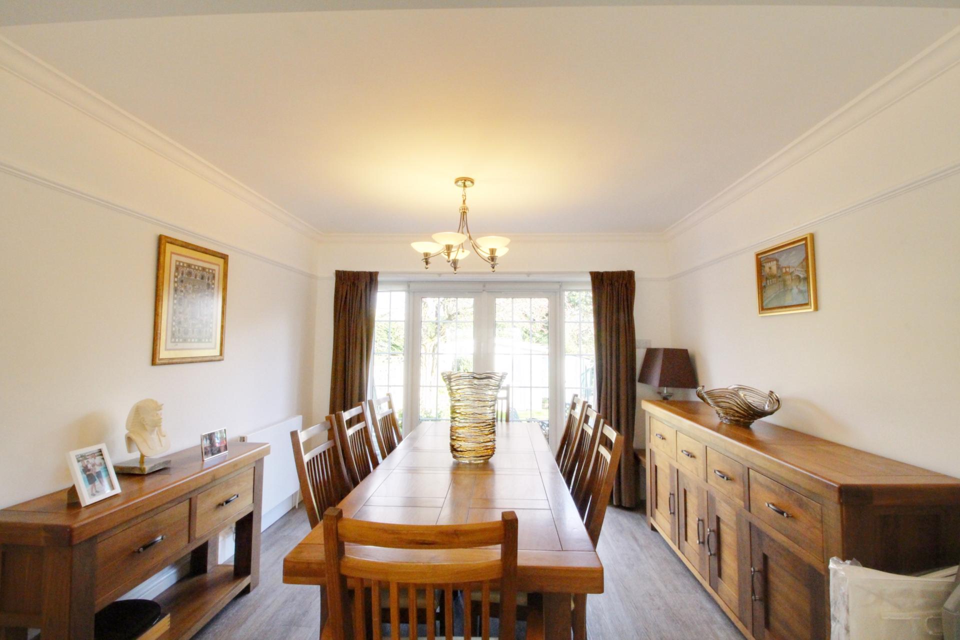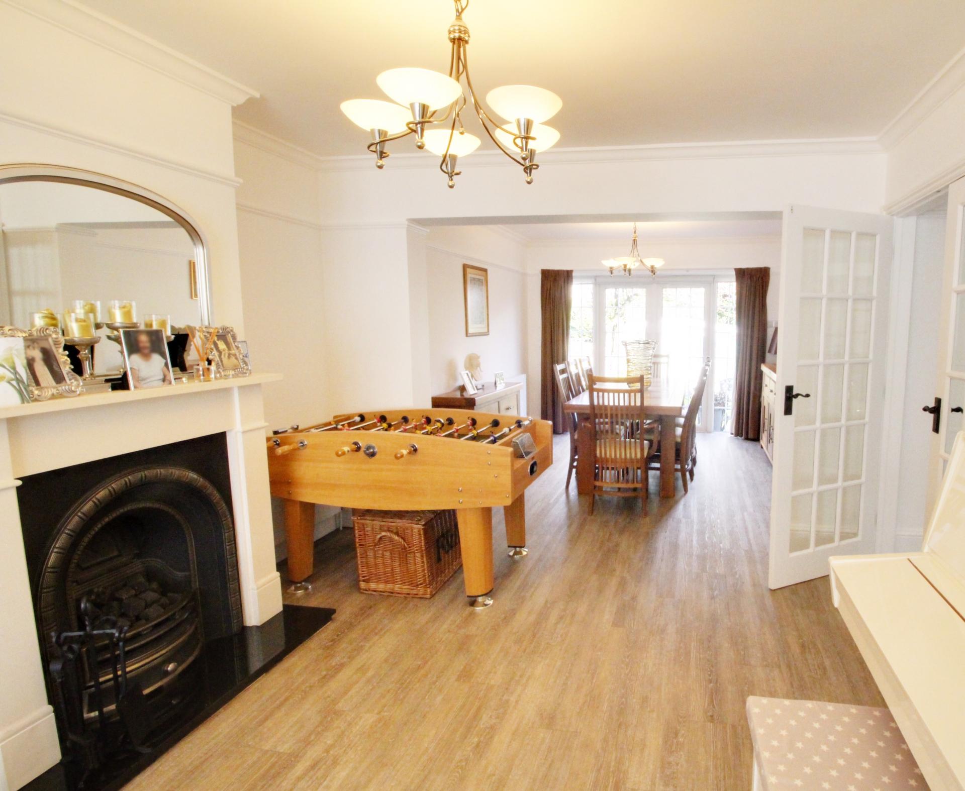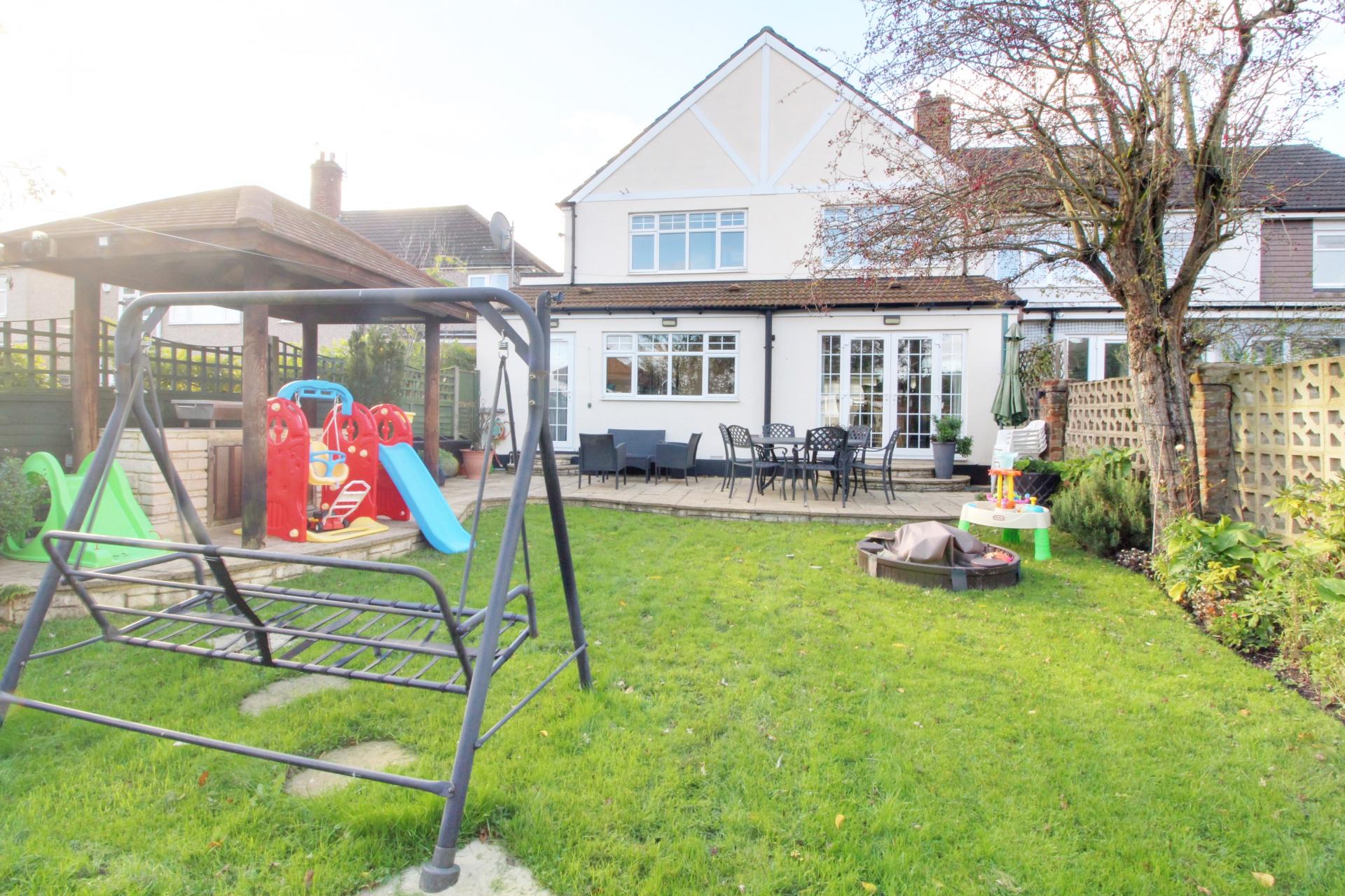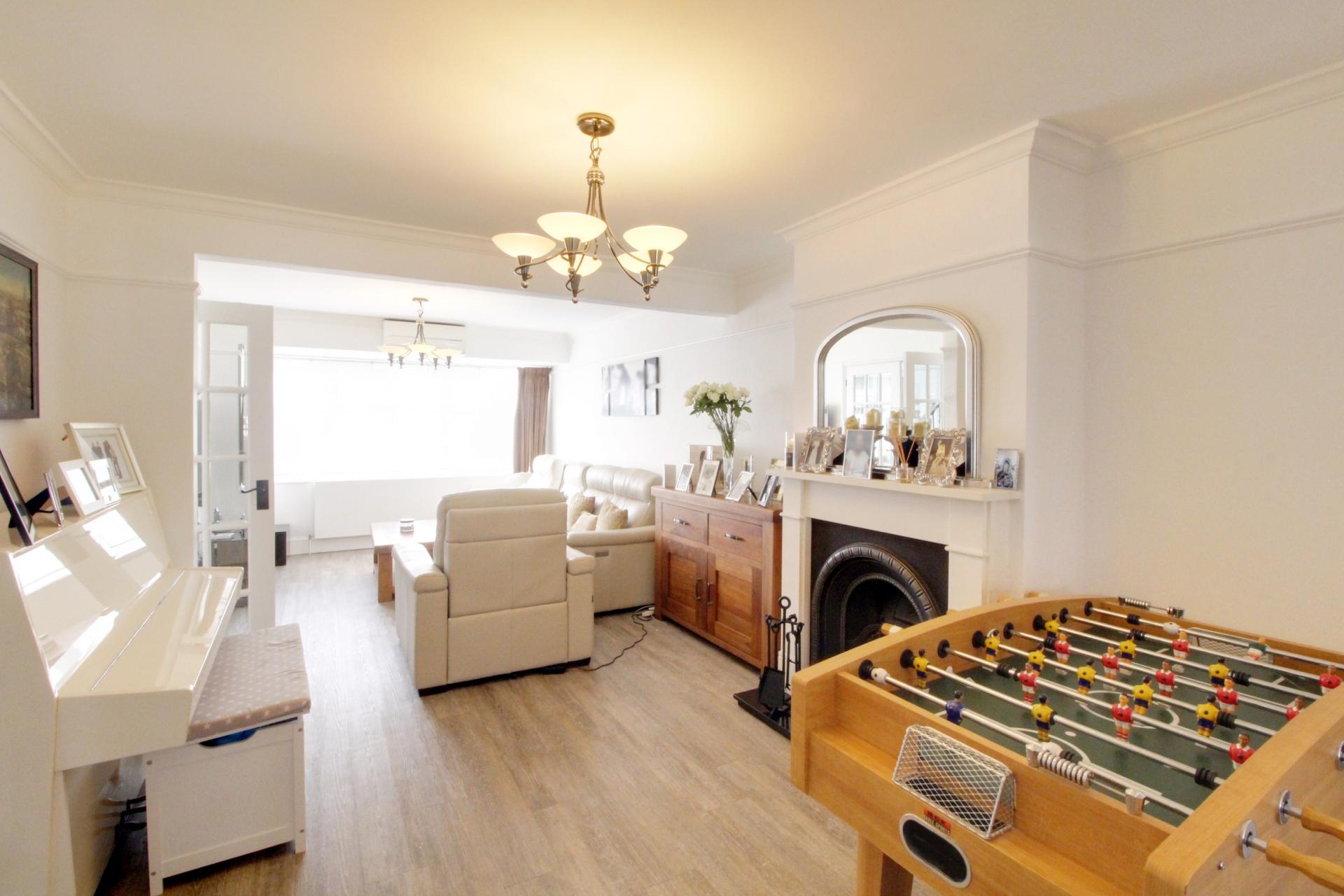 A stunning 4 bedroom generously extended family home offering substantial living accommodation on both floors. The ground floor comprises of large entrance hallway with doors to a large through lounge/dining room, 2nd reception room currently used as gym with bath, 3rd reception room used as home salon/utility room, spacious kitchen breakfast room,and a downstairs wc. The first floor consists of 4 bedrooms with en suite bathroom to master bedroom and further family bathroom. Externally the property benefits from a large driveway to the front and the rear garden has a rockery fishpond, purpose-built barbeque area and at the bottom of the garden is a soundproof studio.