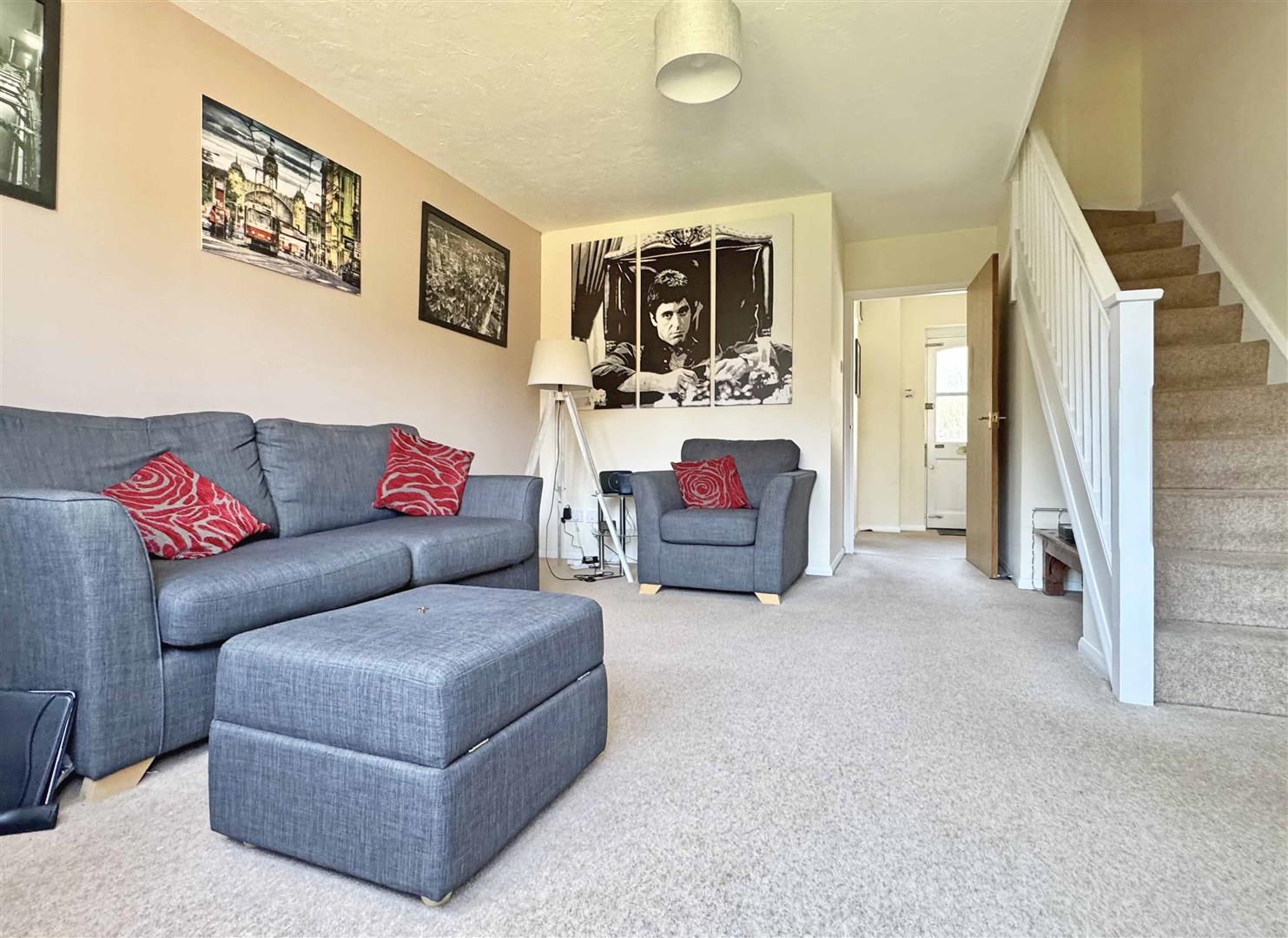 Entrance Hall: - Part-glazed secure main entry door, built-in storage cupboard, radiator, carpeted flooring.