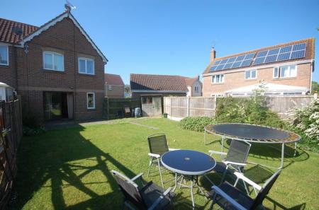 The fenced rear garden is mainly laid to lawn with patio area, flower and shrub borders plus access gate to side.