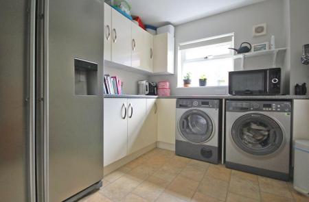 Double glazed window to front, matching wall and base units, space for washing machine and tumble dryer, radiator, vinyl flooring, smooth ceiling. Door to rear store room.