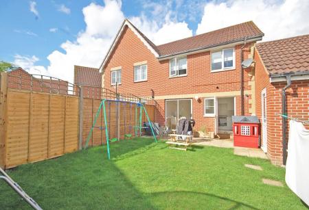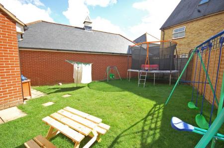 Fenced rear garden commencing with patio area, with remainder laid to lawn and gated side access.