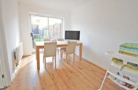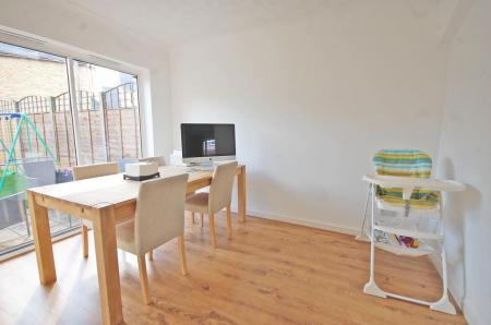 Radiator, laminate flooring. Patio doors to rear garden and door to kitchen.
