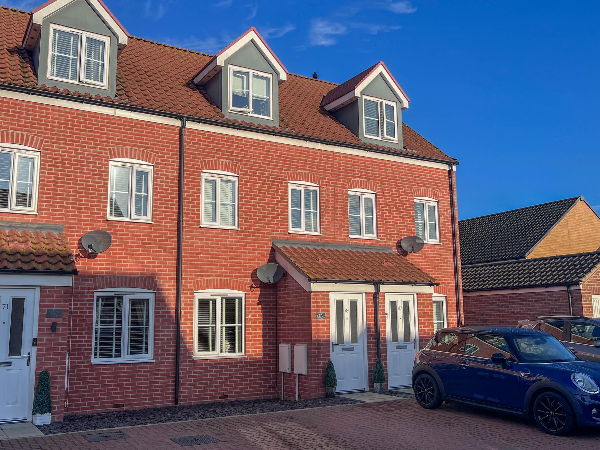 A three bedroom townhouse situated on the popular Bluebell Meadow development in Bradwell. Well kept throughout, the property accommodation comprises; entrance porch, sitting room, kitchen/breakfast room and a downstairs cloakroom. To the first floor there are two well-proportioned bedrooms with a family bathroom and staircase rising to the second floor. The second floor comprises of a good size master bedroom and a modern en-suite. Outside benefits from an enclosed rear garden and two allocated parking spaces. For all enquires please call Iconic today.
