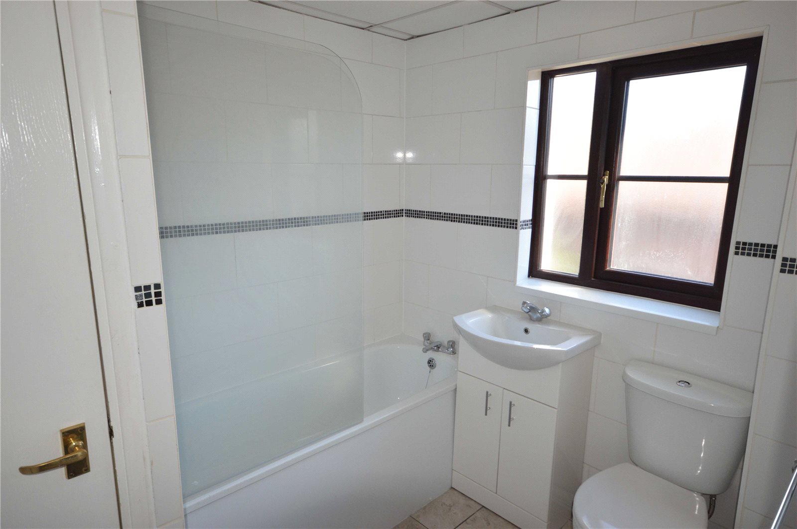 Bathroom 7' 9" x 6' 8" (2.36m x 2.03m) Double glazed window to side. Panelled bath with shower attachment and screen. Vanity wash hand basin. Low level W.C. Tiled flooring.