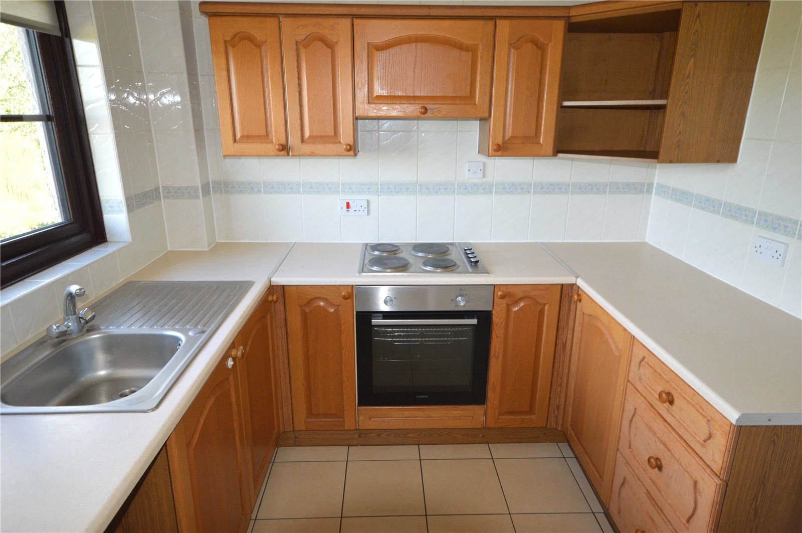 Kitchen 8' 1" x 7' 6" (2.46m x 2.29m) Double glazed window to rear. Fitted wall and base units with roll top work surfaces over. Stainless steel sink unit. Built-in oven and hob. Tiled flooring.