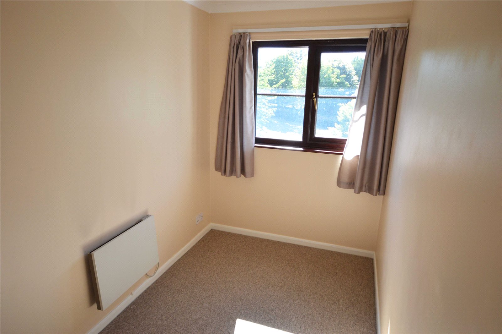 Bedroom Two 8' 5" x 5' 9" (2.57m x 1.75m) Double glazed window to front. Carpet. Electric heater.