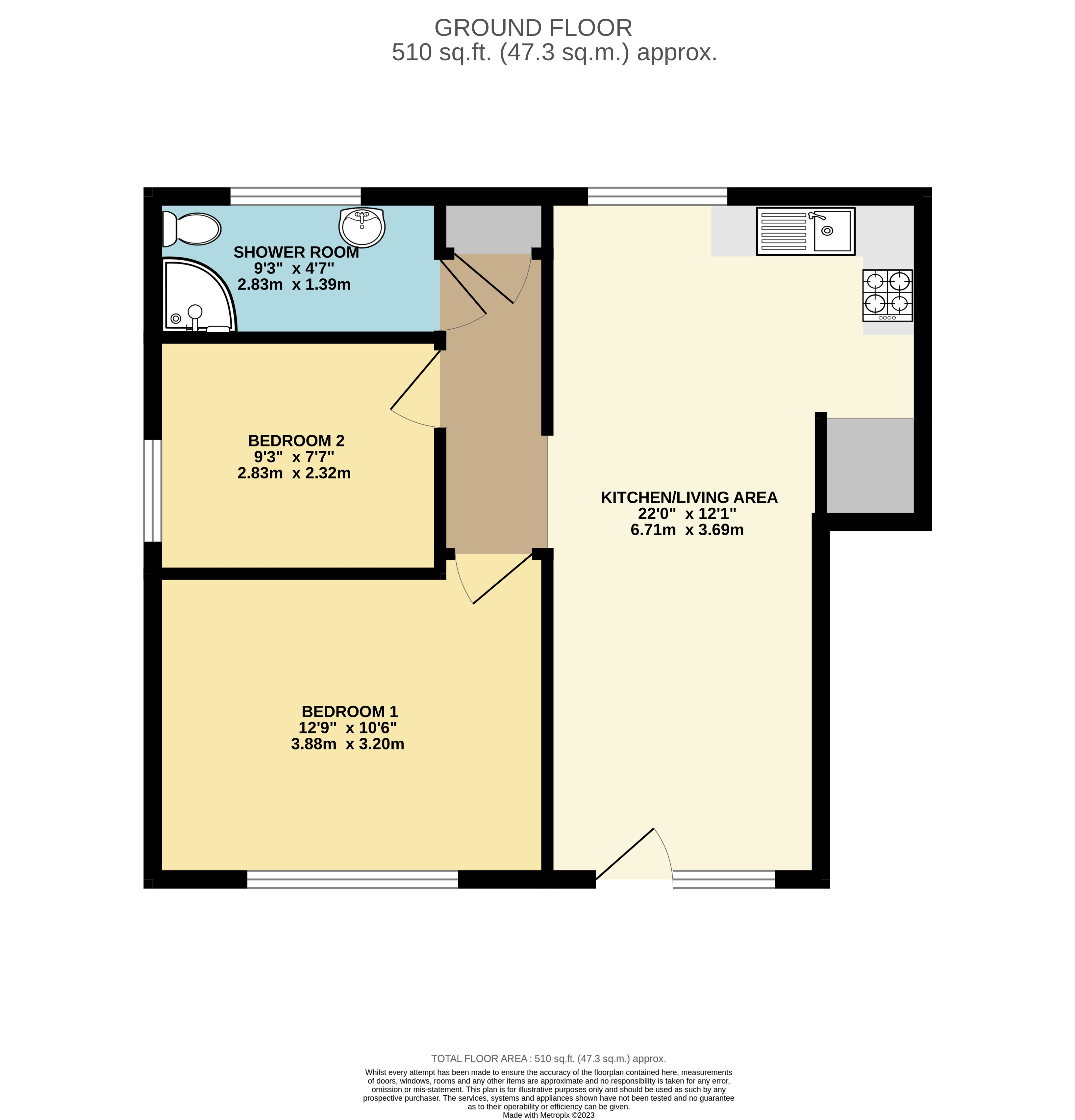 - NB: The building’s water supply is on a bulk meter, paid by the Landlord. The tenant is to pay an additional £15 per month for water usage based on sole occupancy/£25 for double occupancy