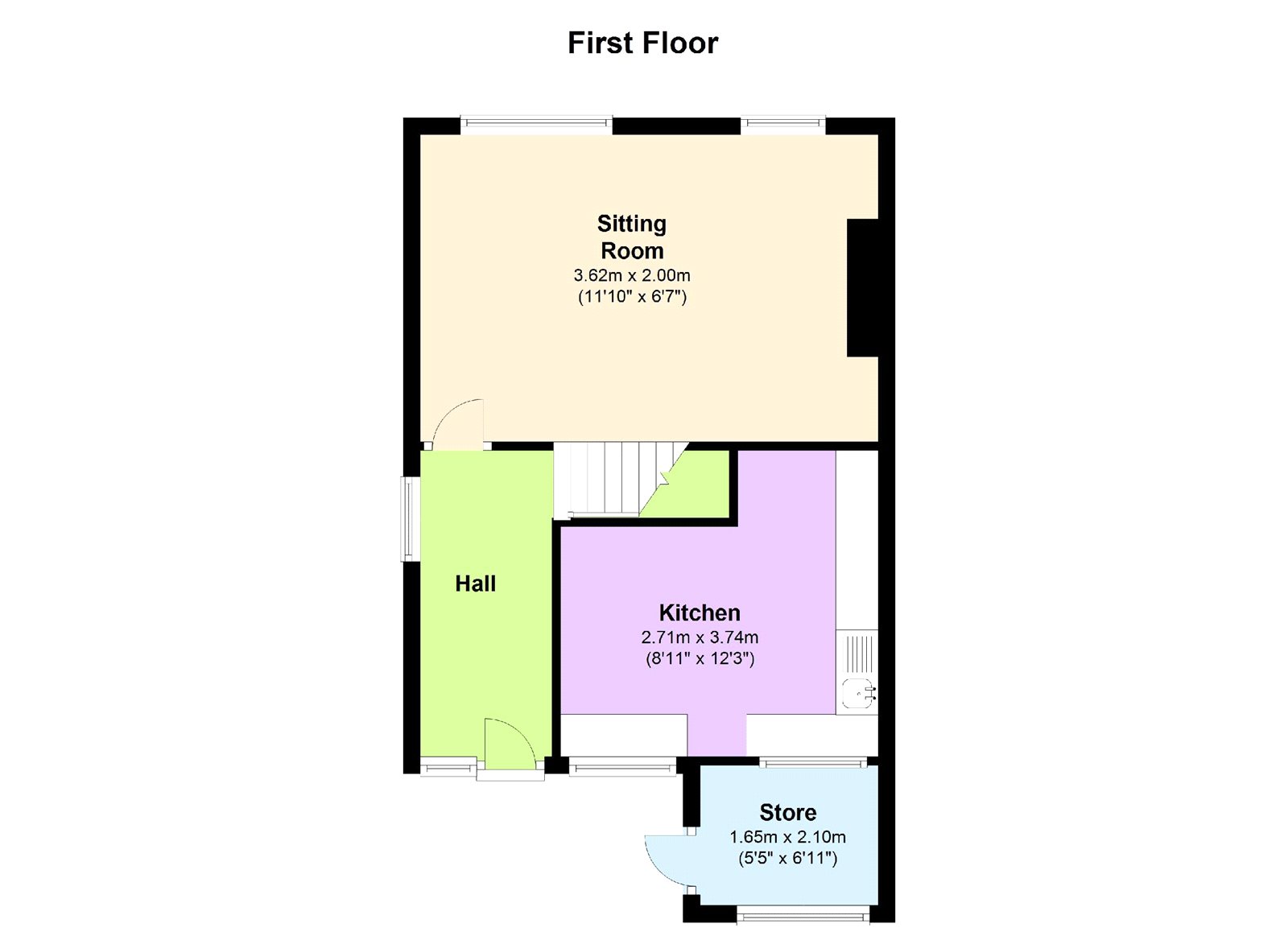 - Living room/Fitted kitchen to the first floor