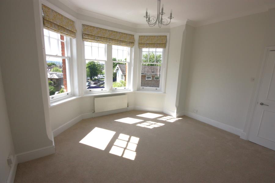 UNFURNISHED. A stunning and airy converted apartment in a Victorian House. Set in one of Guildford's most prestigious roads and within walking distance of the Town Centre and mainline stations. The building has a beautiful and characterful entrance hall with lovely communal gardens. The property comprises an entrance hall leading into a light and spacious triple aspect bay windowed reception room with high ceilings. The kitchen is open plan and there is a large double bedroom with built in wardrobes. Beautiful bathroom with shower. There is an entry phone system and allocated parking.