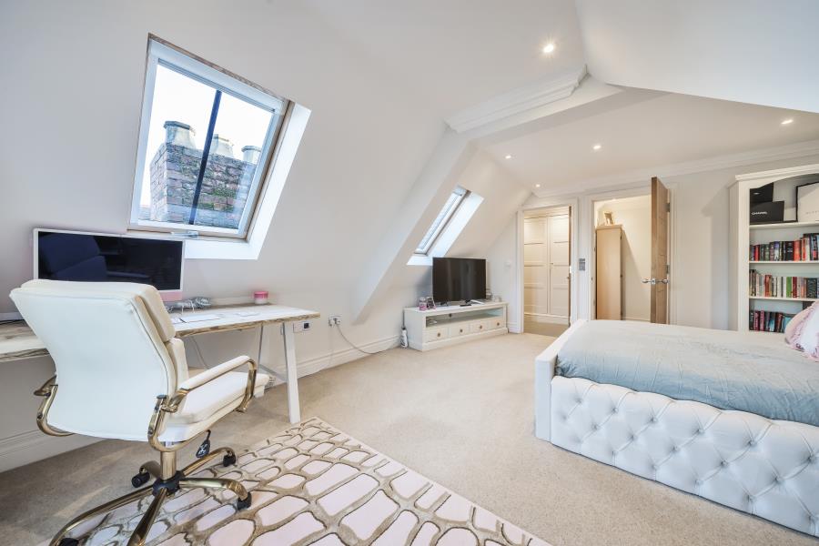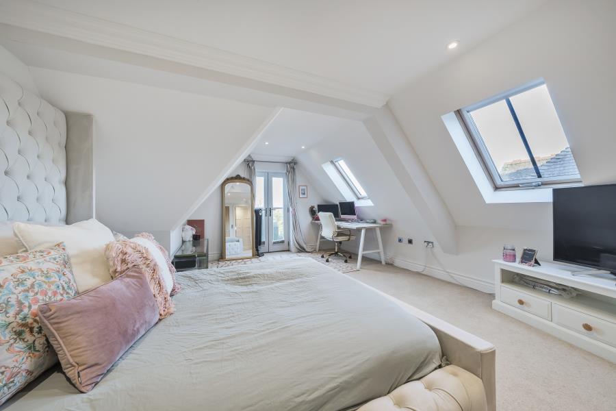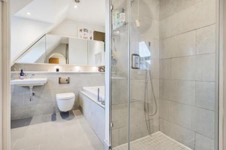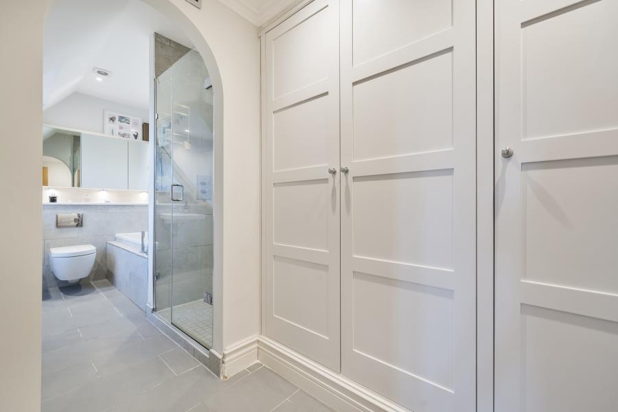 A most unique and stunning two double bedroom apartment located in the heart of Guildford town centre. The first floor of this extremely spacious apartment offers an entrance hall, a large reception room with a modern feature fireplace and a separate dining area positioned within the turret. The kitchen benefits from stone worktops with high end integrated appliances and a large double bedroom with built in wardrobes, ensuite and private balcony. The second floor is the master bedroom with further built in storage, dressing area and bathroom with a separate shower. There is a secure video entry system and a private parking space. Located at the top of the High Street and walking distance to the mainline train stations.