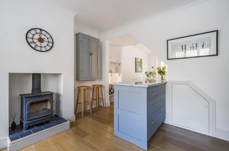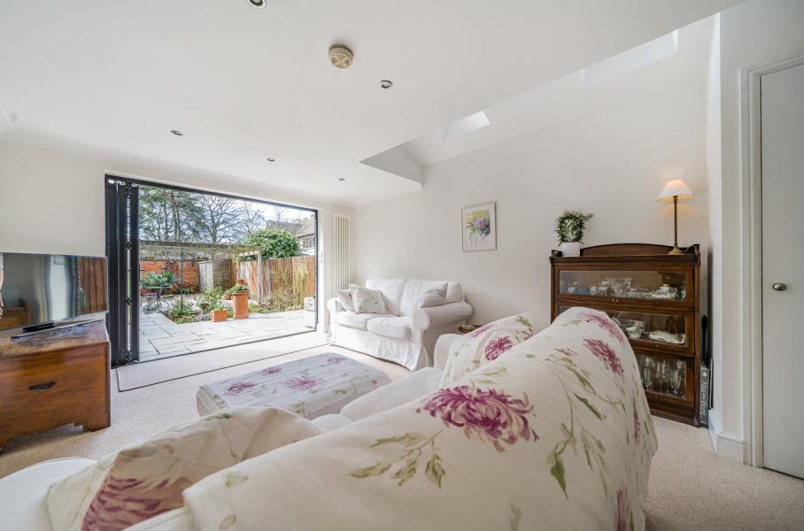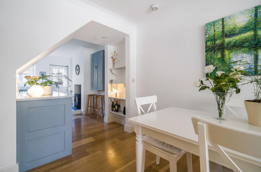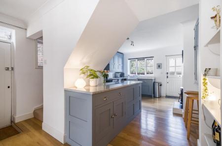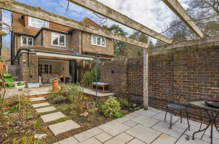 Unfurnished. A stunning three bedroom house set in the heart of Blackheath Village, Surrey Hills. The accommodation is set over three floors and is approached via a private pathway and enters in a beautiful open plan kitchen/breakfast room with a wood burning stove. The room continues through to the dining room which has glazed doors leading through to a light and airy reception room with bi folding doors with access to the private rear garden. There is a downstairs cloakroom. On the first floor are two bedrooms with fitted wardrobes and a family bathroom with modern white suite. On the top floor is a double bedroom with a large vaulted window overlooking the garden and cricket pitch. Fitted wardrobes with an ensuite walk in shower room. The private rear garden is south facing and has been landscaped to patio with a pergola leading to a secluded seating area. Set in an excellent school catchment area and close to Chilworth train station. Easy access to Guildford Town Centre, A3 and M25. EPC C.