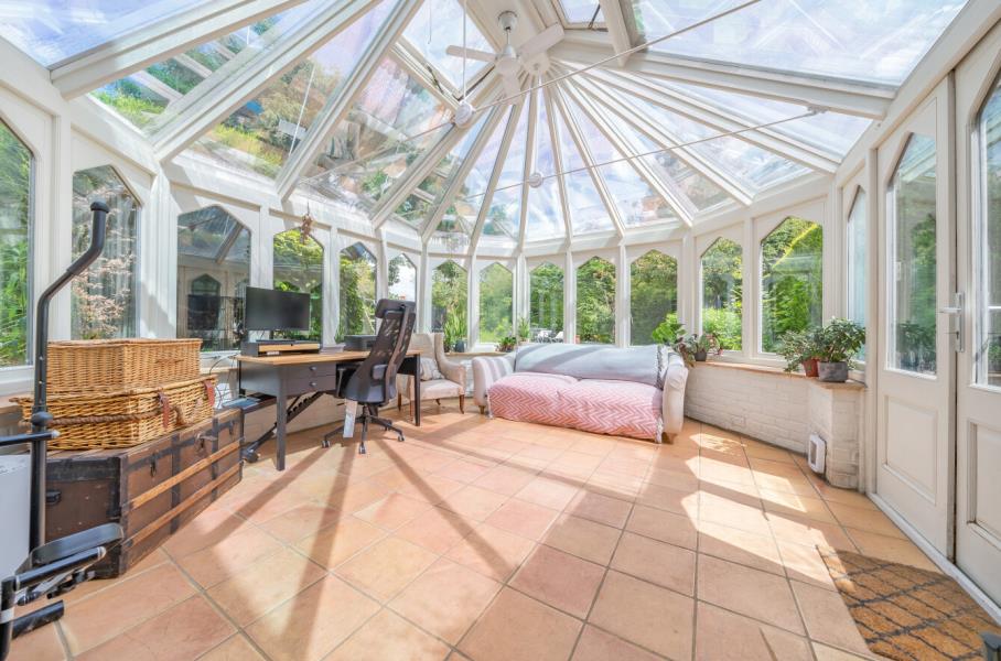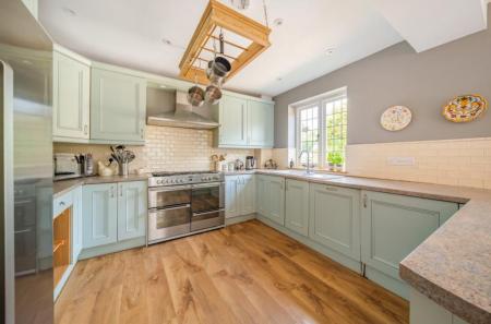 Unfurnished. A beautifully presented 4 bedroom character property in a sought after Surrey Hills village. The property is set down a private track on the edge and has a large gravel driveway with ample parking. There is a bright double aspect reception room with a large bay window and a well equipped country style kitchen which leads into a further dining and living area. Downstairs has a large conservatory and separate utility room leading to the patio and large private garden. Upstairs comprises the master bedroom with ensuite bathroom, two further bedrooms including another generous double and the main family bathroom. On the second floor is an additional room tucked under the eaves ideal for a further bedroom, study or storage. There is a detached one bedroom annexe with it's own kitchen and shower room and bi folding doors leading to the garden. Close to local amenities, Village life, Guildford Town Centre and mainline stations. Easy access to the A3 and M25.