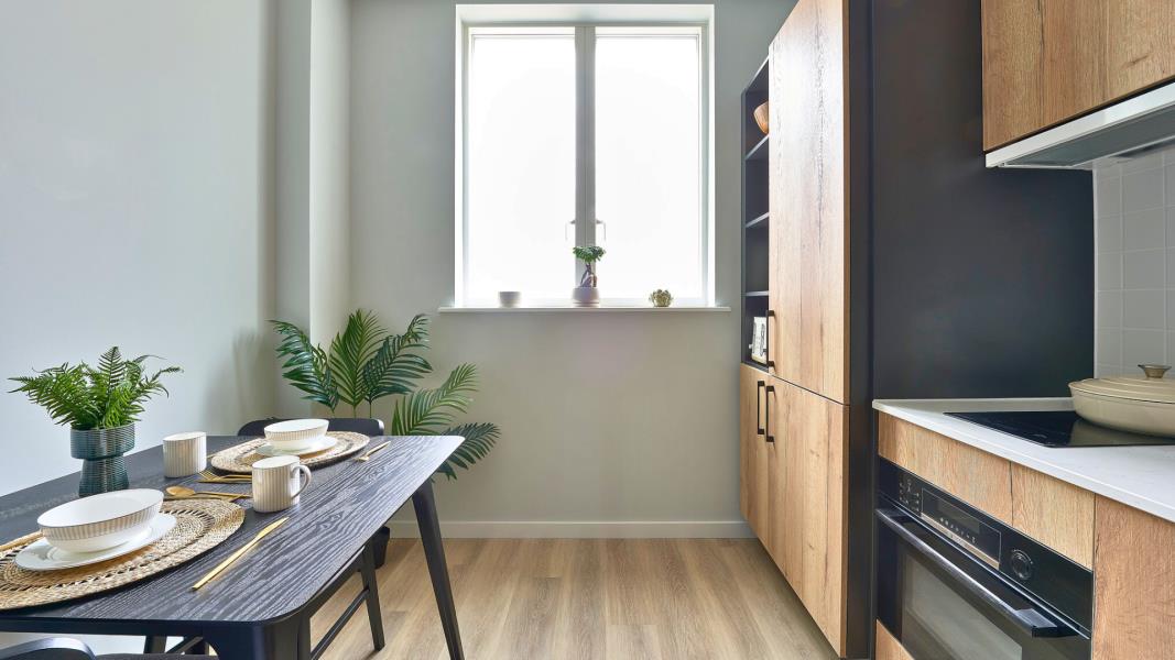 Inside your studio you'll find a cosy double bed, custom storage, a sleek open-plan kitchen, and a beautifully designed...