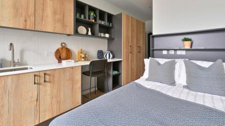 ***NO SECURITY DEPOSIT***, and studio moves are available now on flexible length of tenancies. Ready-made living for young professionals and students -fully furnished, all-inclusive, and designed for how you want to live. Step into your Signature Select Studio, a contemporary studio-style flat (approx. 17-20 m²) with everything you need right where you need it: - Comfortable double bed with smart under-bed storage, bespoke wardrobe, and built-in bedside tables - Rainfall shower in your own en-suite bathroom, complete with integrated storage - Kitchenette fitted with Bosch & Indesit appliances: combi-microwave, ceramic hob, fridge/freezer, and dishwasher-cooking made easy - Your own dining/workspace, plus access to co-working areas throughout the building - Fully electric, eco-conscious heating with individual thermostats-a sustainable studio with style This isn't just your apartment. As a Guildford Plaza resident, you get full access to premium co-living amenities: - Gym, wellness studio, gaming lounge, cinema room, podcast suite, co-working spaces, private dining room, communal Kitchen, and landscaped courtyard - High-speed 1GB Wi-Fi, utilities, and contents insurance-all wrapped up in one easy monthly price - 24/7 on-site concierge and security, plus parcel support, shared cycle scheme, and Enterprise Car Club access - Laid-back weekly socials, fitness meetups, and welcome events-your built-in community, ready to go - Pet-friendly studios available, including a dedicated dog wash station to keep both you and pup fresh Prime Location: Just 5 minutes from Guildford station and High Street, with London, Surrey Research Park, and countryside all within easy reach.