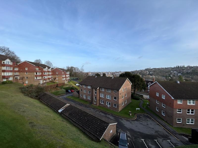 Unfurnished. A deceptively spacious top floor three bedroom apartment with panormaic views over Guildford Town Centre and the countryside. The property lies on the edge of Guildford Town centre and minutes from the High Street and mainline stations. There is a sweeping driveway which leads up to the rear of the development. The master bedroom has an ensuite shower room and all bedrooms have fitted wardrobes. There is a very spacious living room with far reaching views and doors leading onto a private balcony. A well equipped kitchen and seperate bathroom. There is a garage and residents parking. EPC rating C. Easy access to the A3 and M25.