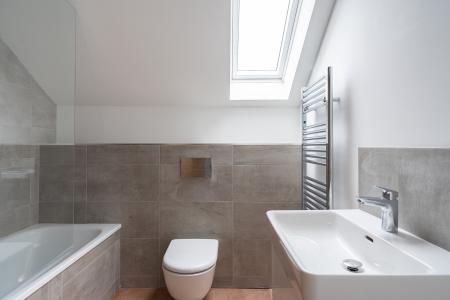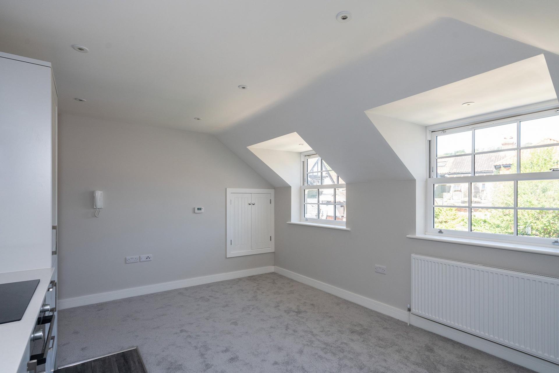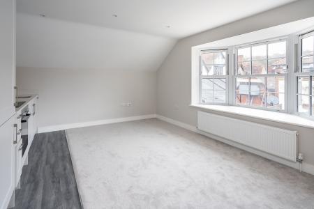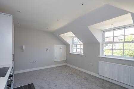This spacious accommodation starts in the bright entrance hall which provides access to all the key rooms and useful loft hatch access. The impressive 14'9 x 12'5 sq ft kitchen/dining room itself has been fitted with an array of eye to ceiling units, quartz worktops and all the expected integrated appliances as well as plenty of space for a dining table and chairs. There is also a useful large storage cupboard idea for household appliances. This is a lovely bright room thanks to the stunning double-glazed bay window allowing plenty of natural light to flood in. Next is the spacious double bedroom with Velux window and plenty of space for all your bedroom furniture. Finishing off this wonderful apartment is the generous bathroom finished with a modern white suite and luxurious slate tiles.