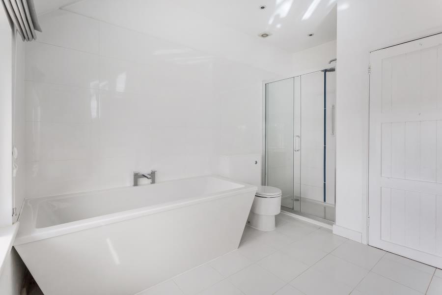 A completely refurbished detached character Cottage set in the heart of the Surrey Hills Village of Shere. The property is accessed via a private track and is set in an area of outstanding natural beauty with panoramic views over the Surrey Hills countryside. There is a large gravel driveway with garage and ample parking. The downstairs comprises of a large entrance hall with wooden flooring and access to a large and bright reception room with doors leading to the patio and garden. There is a large kitchen / dining room with high end fitted appliances and a separate utility room and large conservatory with access to the rear garden. There is a downstairs study / 4th bedroom and cloakroom. A wooden staircase leads up to a large double aspect master bedroom with feature windows, two further bedrooms with one ensuite and a new family bathroom and shower. Large and private rear garden. Brand new carpets and redecoration throughout. Close proximity to top schools and excellent access to Guildford, Dorking and London. EPC rating D.