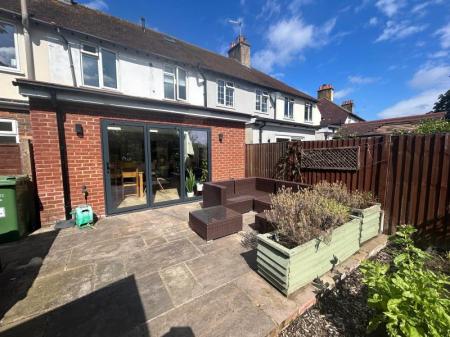 Unfurnished/Furnished. An immaculately presented two double bedroom house set on the edge of Guildford Town Centre. The property has a brand new front entrance and this leads into a useful porch for storage. The entrance hall leads into a light and bright reception room with a feature fireplace and plantation shutters. There is a stunning open plan kitchen/dining room with high ceilings and velux windows. High end integrated appliances, kitchen island and separate cloakroom. Upstairs leads to two double bedrooms with fitted wardrobes, feature fireplaces and plantation shutters. There is a new tiled bathroom with shower and the landing has a high vaulted window. To the rear of the property is a large and stunning patio with garden and a new shed. Ample off street parking.