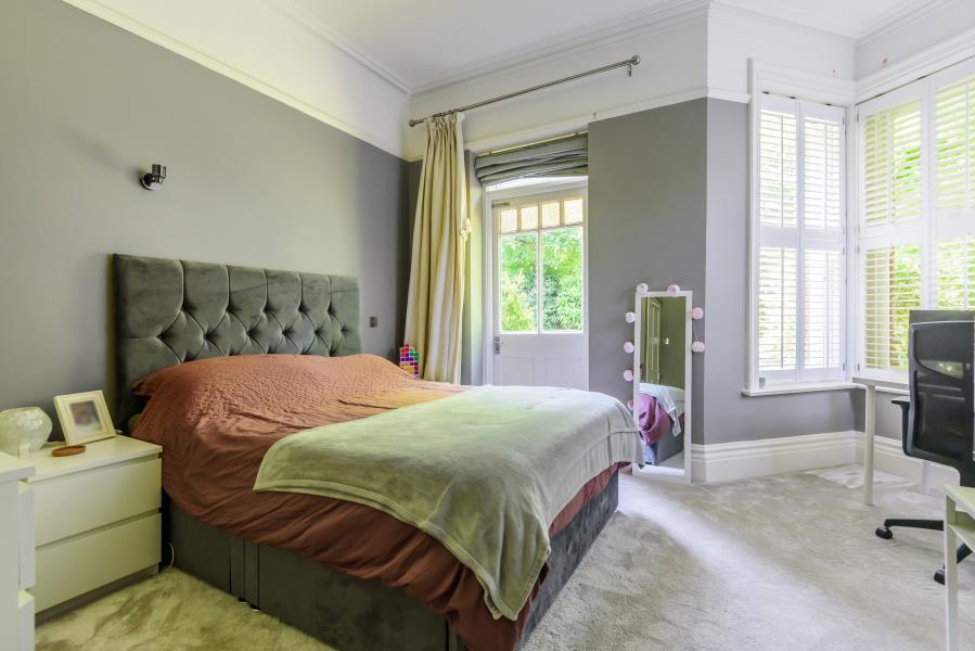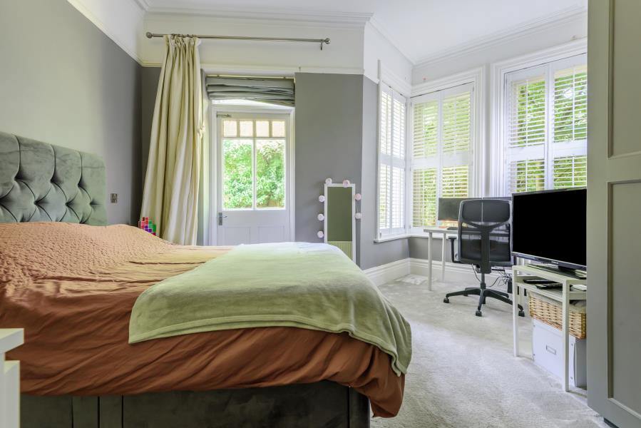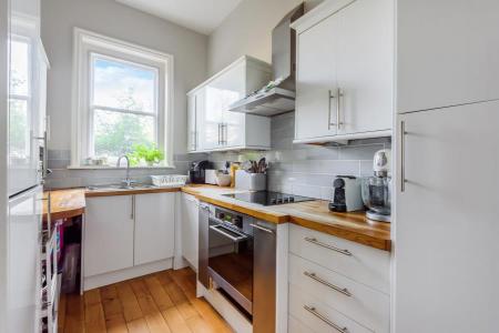 Unfurnished. A stunning ground floor victorian converted apartment set on the edge of Guildford Town Centre. The property is accessed via a hallway with large storage cupboard. There is an elegant reception room with high ceilings and wooden flooring and a bay fronted window with feature fireplace. Ample space for a dining area in the bay window. A contemporary kitchen with wooden worktops and high end integrated appliances. There is a spacious double bedroom with fitted wardrobes and a large bay window and french doors leading onto the communal garden. A large and contemporary shower room with a modern white suite. Very well kept communal gardens. Residents parking and a garage. Minutes walk to Guildford Town Centre and mainline stations. Easy access to A3 and M25.