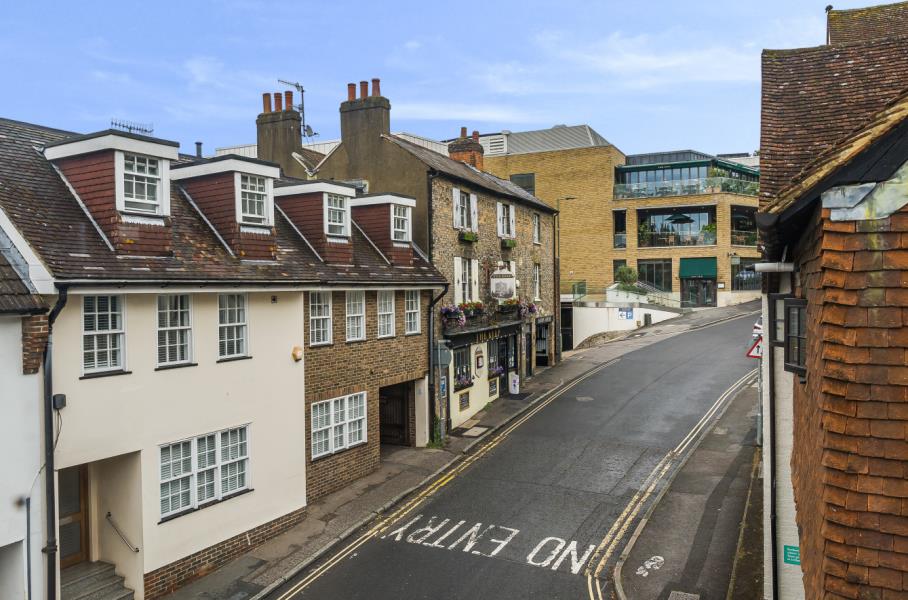 Unfurnished. A beautifully presented light and airy two double bedroom Townhouse set over three floors in the heart of Guildford Town Centre. On the ground floor is a private courtyard leading to the front door with an entrance hall leading up to the first floor landing with ample storage. There is a stunning 17 foot plus kitchen/breakfast room with open views of the castle and the reception room has views over Chapel Street. On the second floor is master bedroom with an ensuite shower room and a second double bedroom with separate bathroom. Residents permit parking. Walking distance to mainline stations and easy access to A3 and M25 and local amenities. EPC rating D.
