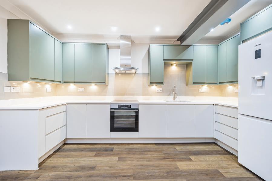 Unfurnished. A fully refurbished 4 bedroom house set within minutes of Guildford Town Centre and mainline stations. The property has a stunning brand new open plan kitchen/dining room with central island and high end integrated applicances and separate utility area. To the rear is a reception/dining room with doors leading to the patio area and tiered garden with shed. Downstairs has a brand new cloakroom and a large fourth bedroom with brand new ensuite. Upstairs has three bedrooms and a new bathroom. Residents permit parking. Close proximity to the Royal Surrey Hospital and Guildford Research Park. Easy access to the A3 and M25.