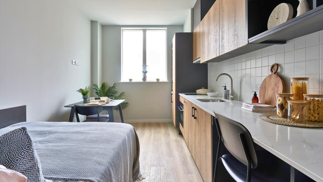 Inside your studio you'll find a cosy double bed, custom storage, a sleek open-plan kitchen, and a beautifully designed...