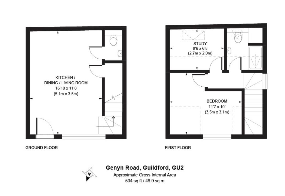 A brand new semi-detached house finished to a high standard. The house is located in a central location only a short walk from the busy high street, mainline railway station and the university. Benefits include an open plan living/kitchen/dining room, the kitchens are fully fitted with integrated Bosch appliances and there is a downstairs WC and under stairs storage cupboard. The large front aspect room will benefit from plenty of light with grey double-glazed windows. On the first floor is a double bedroom, with views down into Guildford, a separate study and a fully fitted shower room with under floor heating and Grohe fittings. Located just half a mile from both Guildford Town Centre, offering a wide range of shopping and restaurants, cultural and social amenities, and from The University Of Surrey. Guildford mainline station is just a moment’s walk away offering a fast and frequent service to London Waterloo in approximately 37 minutes. The A3 is close by and provides a link to London, the airports and the national motorway network via the M25 at Wisley. There is an excellent selection of schools for all ages in the area Anthracite grey UPVC double glazed windows Anthracite grey composite front door White matt emulsion throughout Engineered oak floor in main space downstairs Grey handleless kitchen with integrated Bosch appliances – fridge freezer, dishwasher, induction hob, multifunction oven and extractor hood WC with grey tiled floor with Grohe wall hung toilet and basin Utility/storage cupboard with Baxi gas combi boiler and plumbing for washing machine Oak veneer doors throughout Neutral carpet throughout stairs, landing, bedroom and study Shower room with grey tiled floor, electric underfloor heating, white tiled walls, built in storage cupboard and Grohe fittings: wall hung toilet, sink, tap and shower LED down lights throughout Ring video doorbell Parking - resident permit parking.
