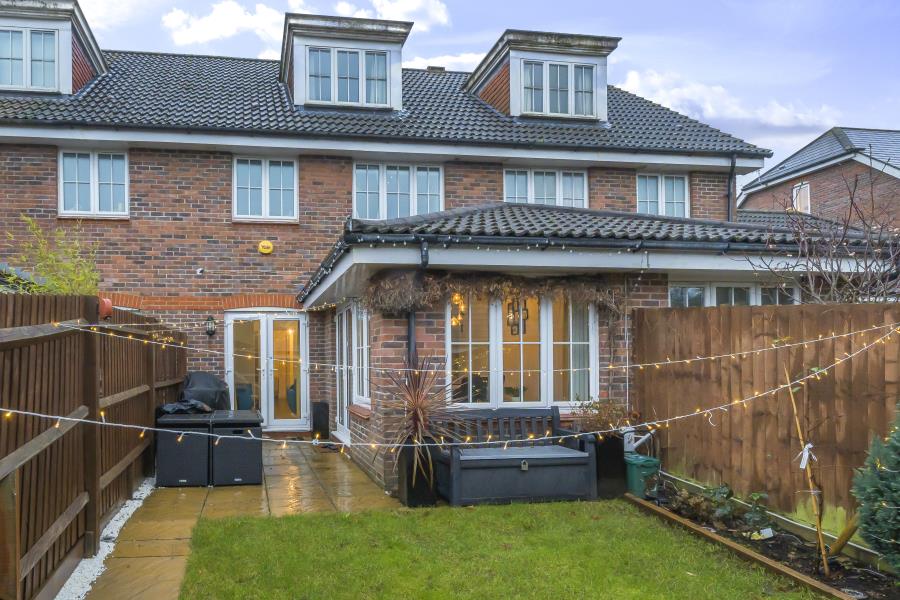Unfurnished. A superbly presented three bedroom house set in the heart of the prestigious Queen Elizabeth Park development. The Property has a large and light entrance hall with a downstairs cloakroom. There is a well equipped kitchen with high end integrated appliances and breakfast bar with views over the central gardens. There are two large reception rooms with french doors leading onto the private rear garden. The first floor comprises the master bedroom with ensuite and a second double bedroom both with built in wardrobes and a separate family bathroom. The third floor comprises a large second double bedroom. Close proximity to local amenities, Guildford and Woking Town Centres, Royal Surrey and Guildford Research Park. EPC rating C.