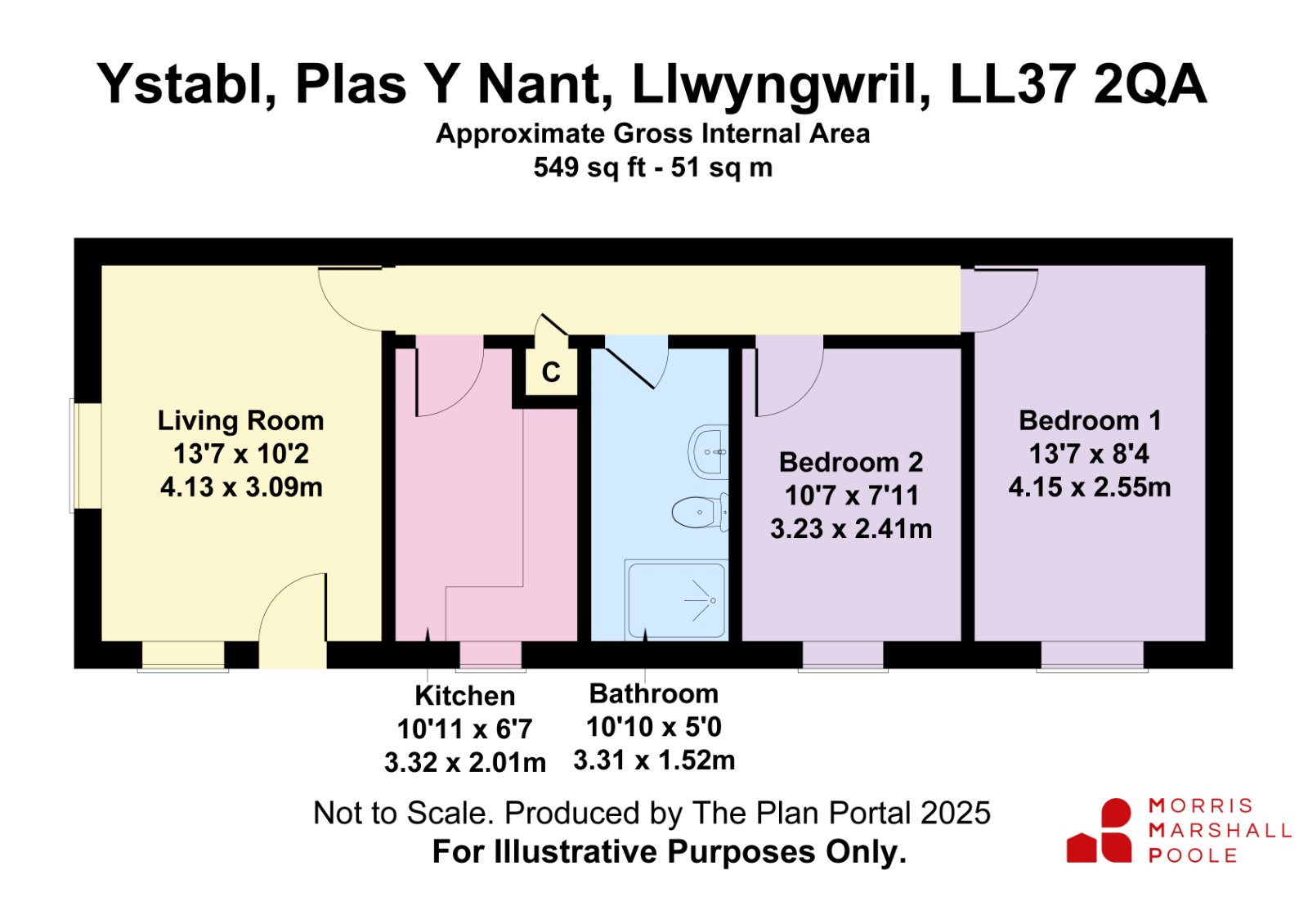 - Entrance Hall, Living Room, Kitchen, 2 Bedrooms, Bathroom