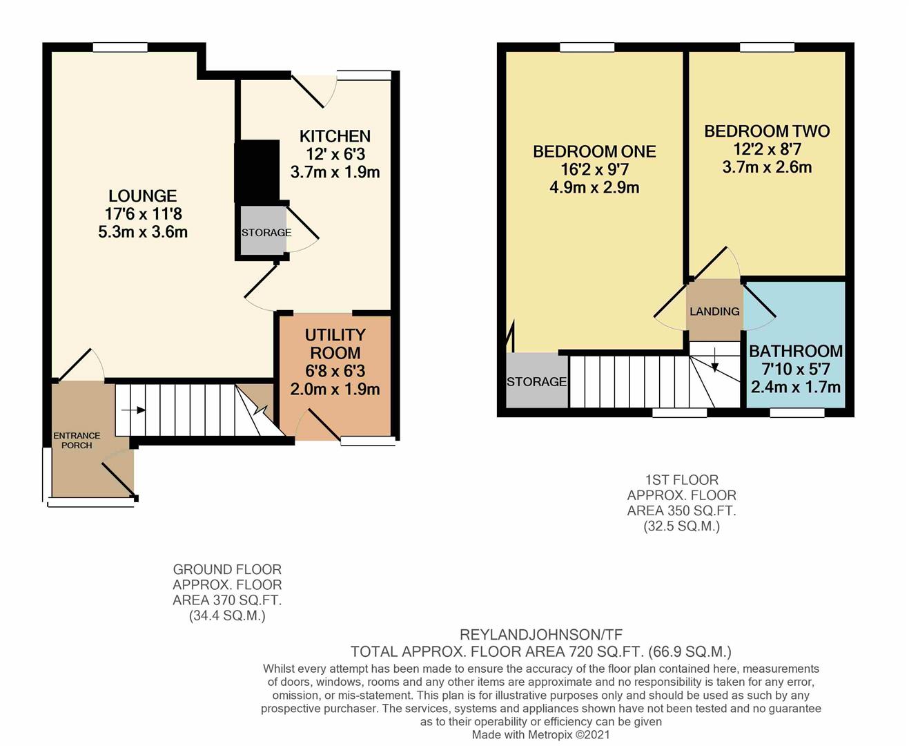 A recently decorated two bedroom terraced home close to shops and overlooking the church. The property has an entrance porch leading to a lounge, kitchen with a range of fitted wall and base units, storage and utility room. The first floor has two good size double bedrooms and a family bathroom with white suite, outside the rear garden is mainly laid to lawn and to the front there is an open green area. The property is available NOW on an unfurnished basis. NO pets