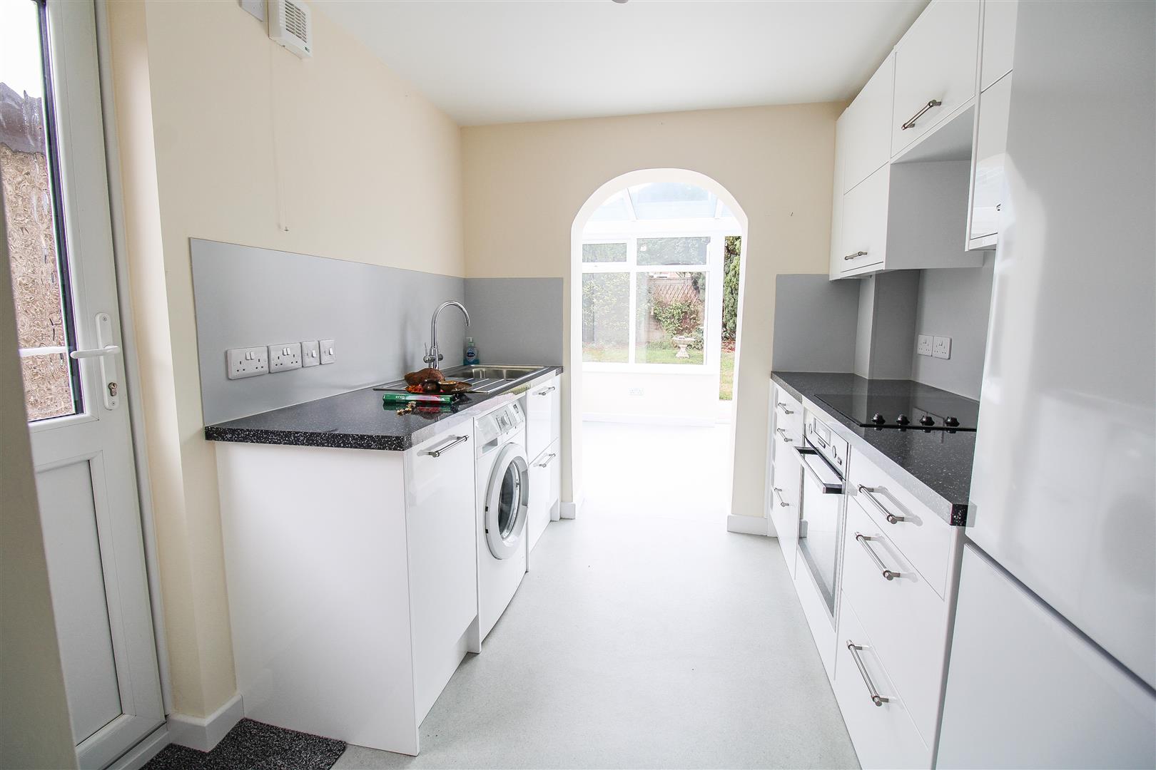 A two bedroom end of terraced home with garage and drive, close to the town. The property has an entrance hall, generous size lounge, conservatory, fitted kitchen with a range of wall and base units and the first floor has a modern shower room and two double bedrooms. Outside, there is a garage to the side and the rear garden is mainly laid to lawn. Available Mid August on an unfurnished basis.
