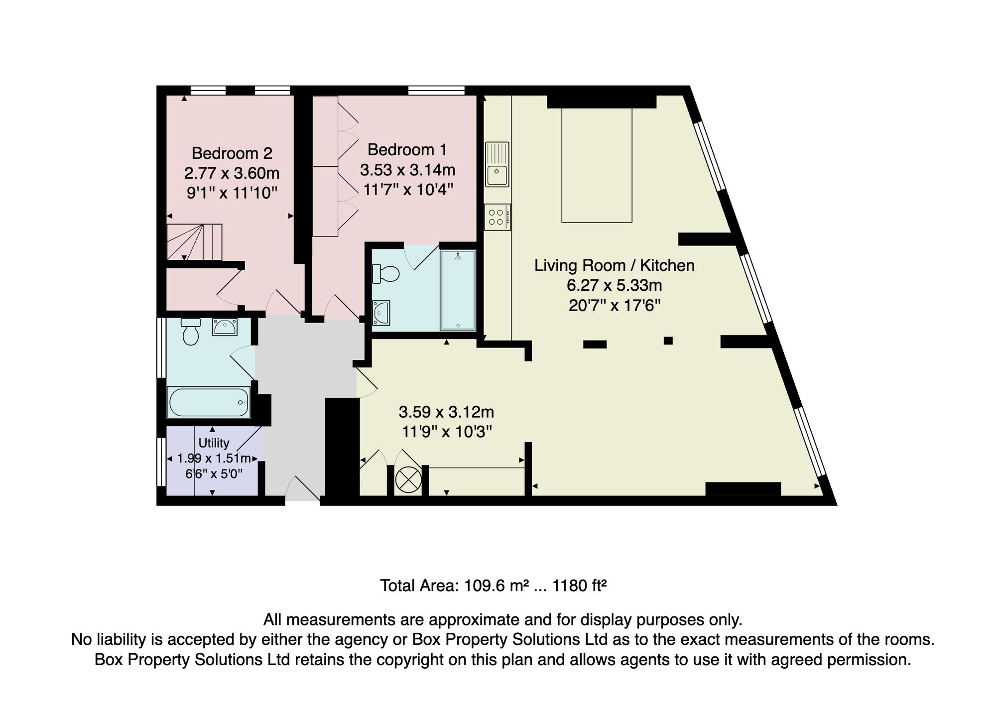 - 1 Reception room, 2 Bedrooms, 2 Bathrooms
