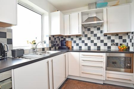 With a range of modern wall and base units with electric hob and double oven, integrated fridge and microwave. Window to side. Washing machine, dishwasher and freezer are gifted to the property.