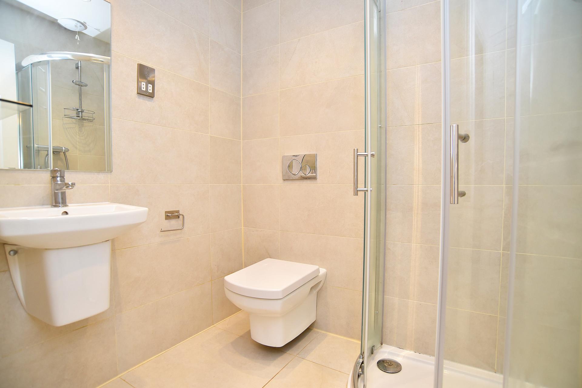 ENSUITE SHOWER ROOM With shower cubicle, basin and WC.
