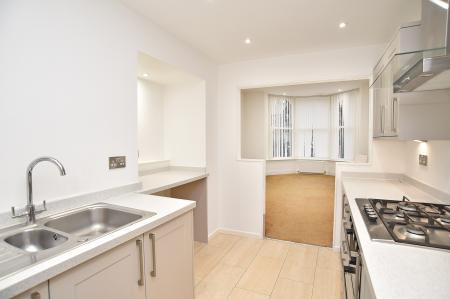 KITCHEN With modern units, integrated appliances, gas hob and space for washing machine.
