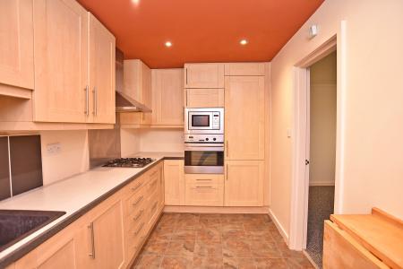 KITCHEN 13' 3" x 7' 1" (4.04m x 2.16m) Fitted with a range of wall and base units with inset sink unit and including gas hob, integrated electric oven, integrated microwave, integrated dishwasher and integrated fridge and freezer.