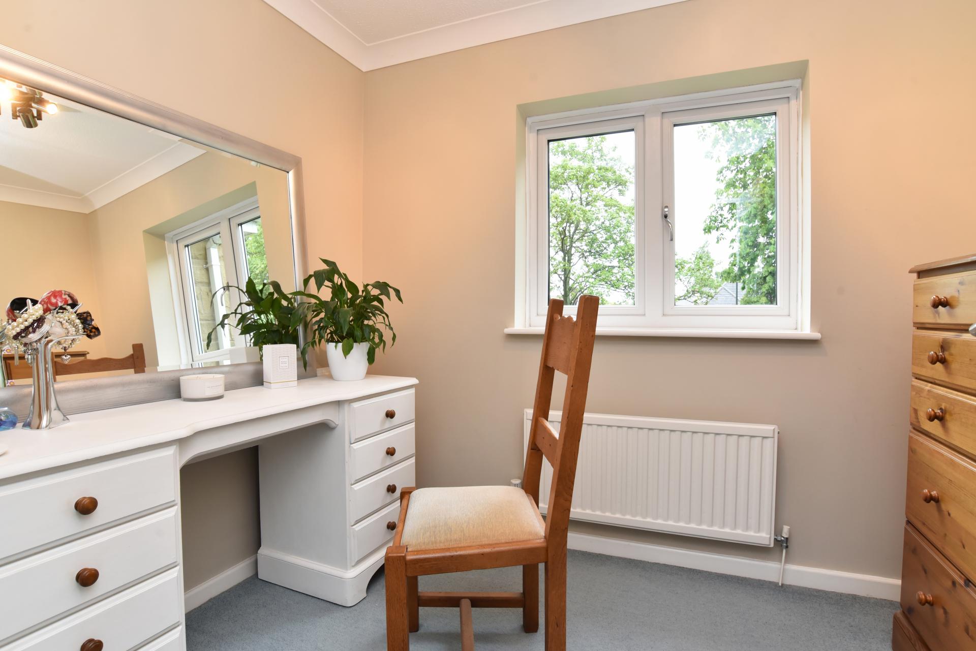 OUTSIDE Driveway providing ample parking leads to an INTEGRAL GARAGE (19'5 x 17'7). To the front there is a lawned garden, tall hedging and mature trees shielding from the road. To the rear is a generous lawned, tree lined garden with well-stocked borders, patio, paved seating areas, large Summerhouse and storage.