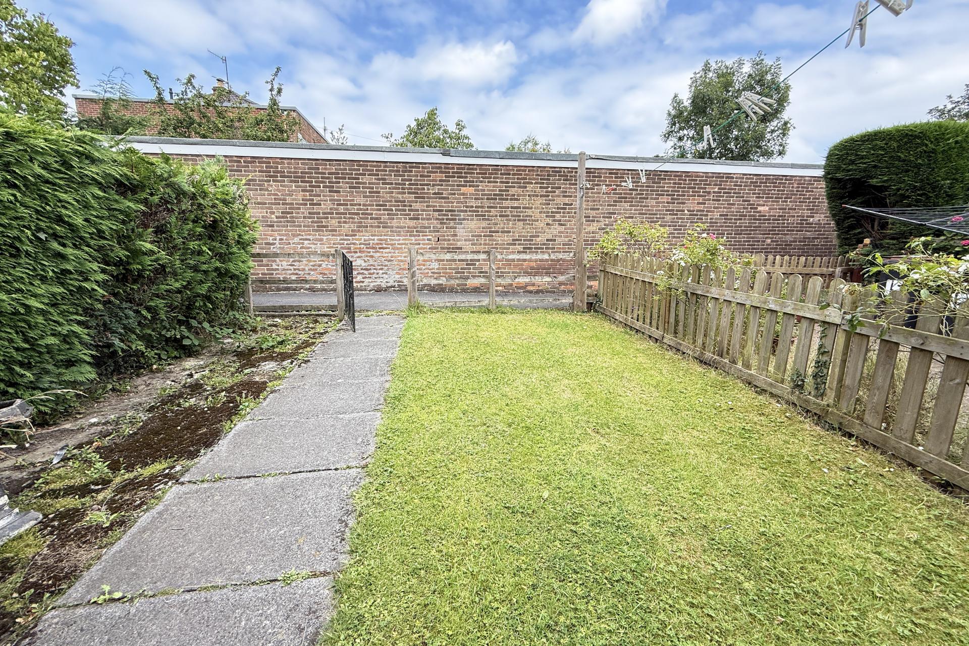 OUTSIDE To the front of the property is a lawned garden with flagged pathway leading to front door. To the rear of the property is an enclosed rear garden. Garage in a separate block to the rear of the property.