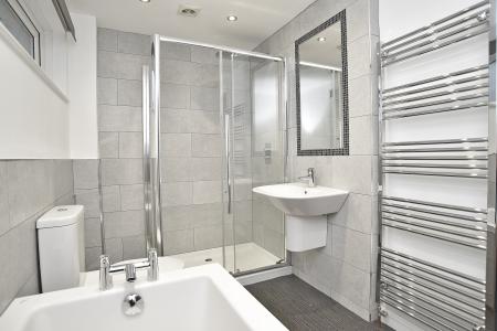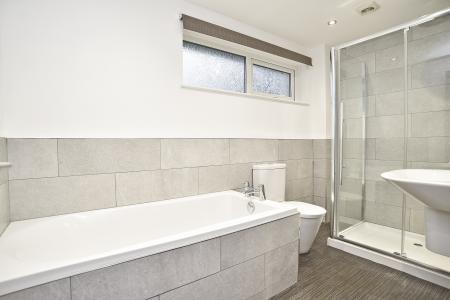 BATHROOM 10' 5" x 7' 10" (3.2m x 2.4m) Comprising bath, walk in shower, basin, WC and heated towel rail.
