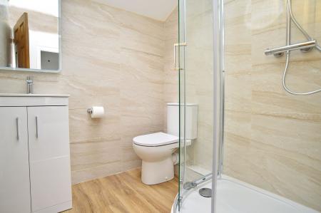 Newly fitted shower cubicle, basin and wc.